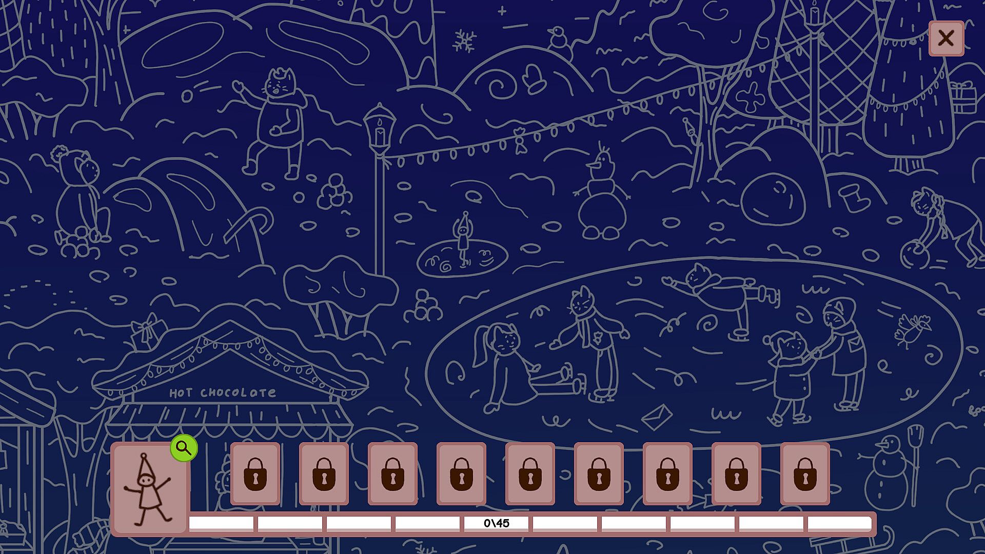 Enter our winter fairy tale, the world of cat people to find hidden elves having fun, winter sweets and other and other attrbutes of winter in enchanting snowy landscapes. Explore a cozy winter forest on the edge of town and a house with Santa's workshop.