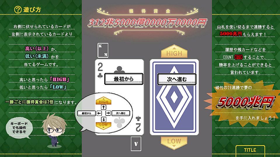 You can earn 5,000 trillion yen by winning 26 consecutive games.