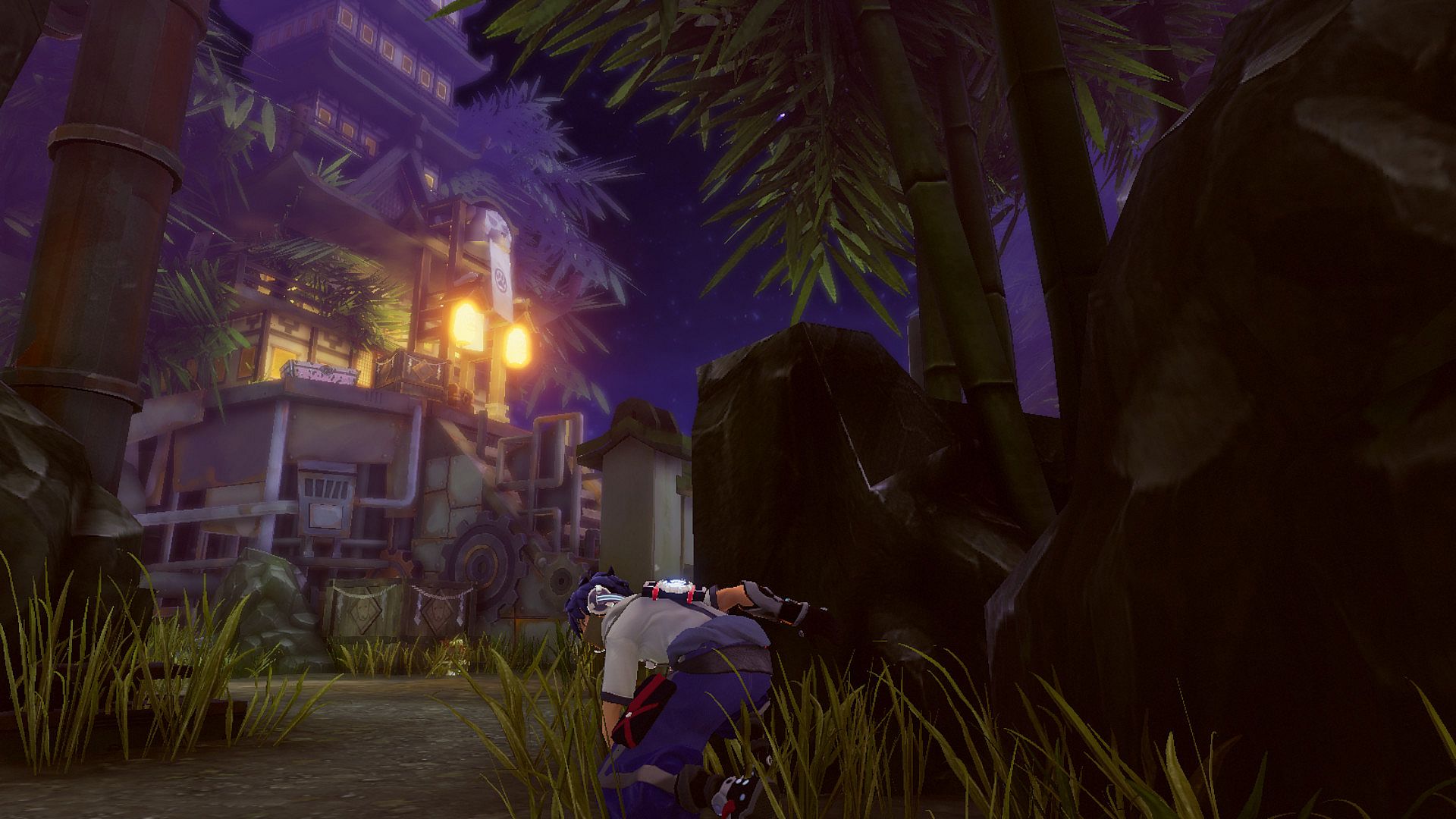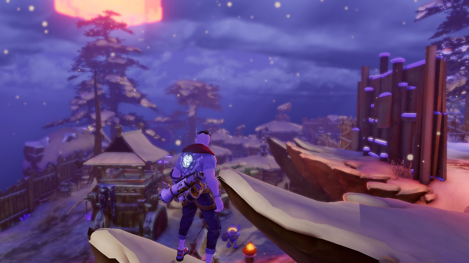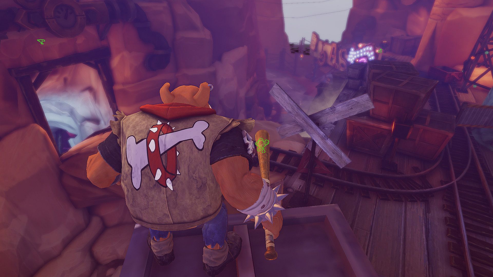 1名玩家扮演大兽人,在浮岛上追击人类,阻止人类逃离浮岛。大兽人可以感知到机甲的气场,从机甲的行为判断出周围是否有人类,而人类被小兽人击中也会暴露气场给大兽人。兽人一方在浮岛上布置了隔离屏障,隔离屏障会随对局时间的流逝而缓慢充能,当充能达到100%,所有尚未逃离浮岛的人类都会被放逐。而且,兽人每次击杀人类都会增加少量充能,而人类每提交一个零件都会减少少量充能。