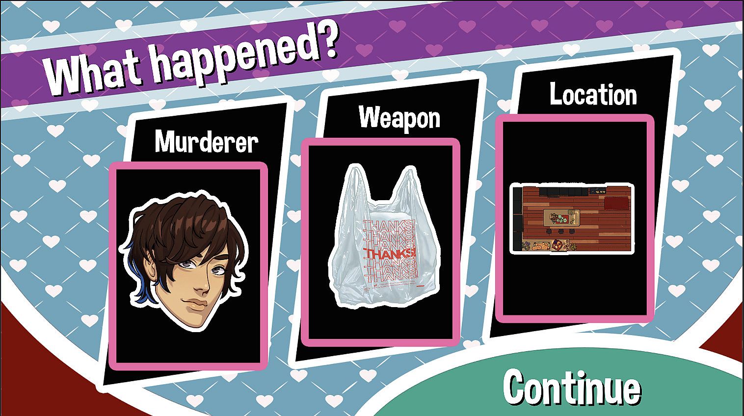- A Puzzle Game of Deduction. Gain clues about the murderer by interviewing your harem of (living) himbos. Use those clues to determine the murderer and circumstances.