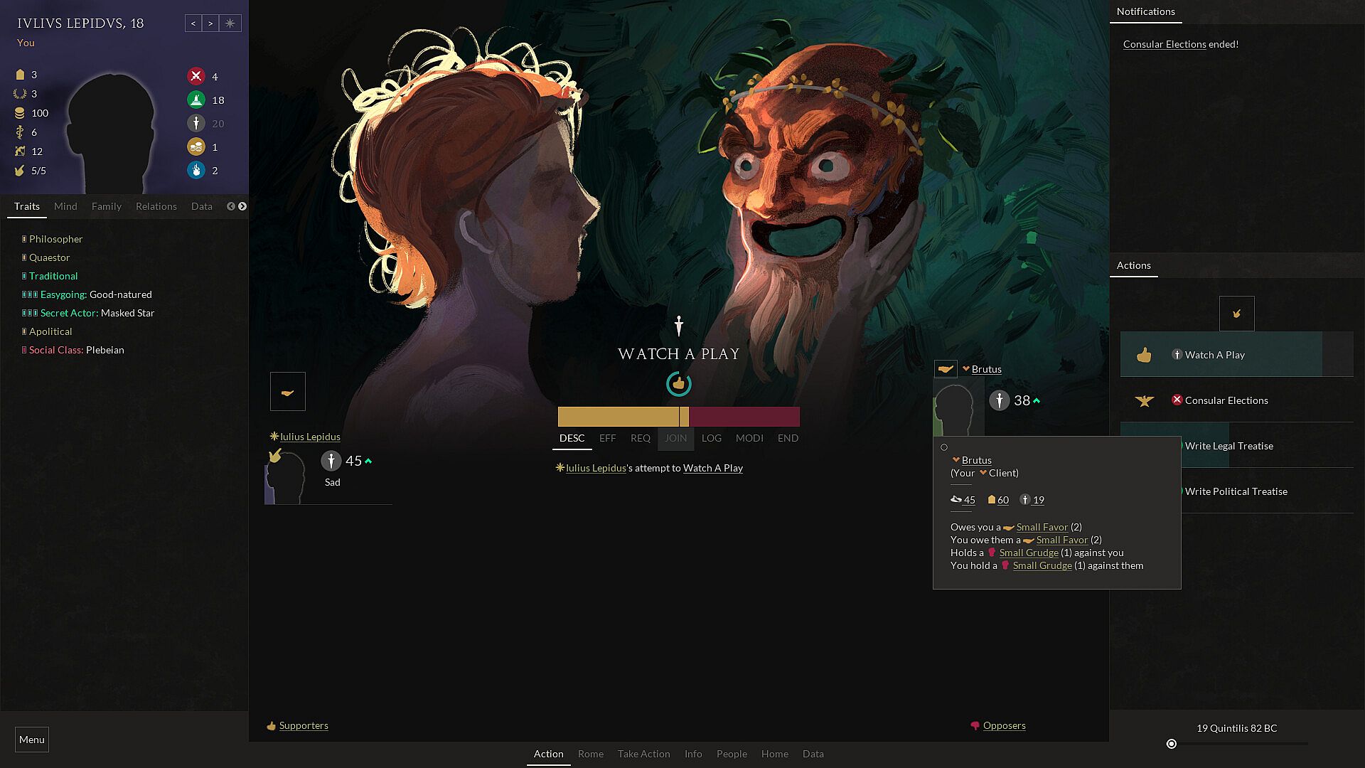 Manipulate characters and situations to get what you want. Rise socially in the Clientela system, an intricate representation of the social hierarchy of Ancient Rome, where patrons protect clients and clients repay their patrons with social and political support.