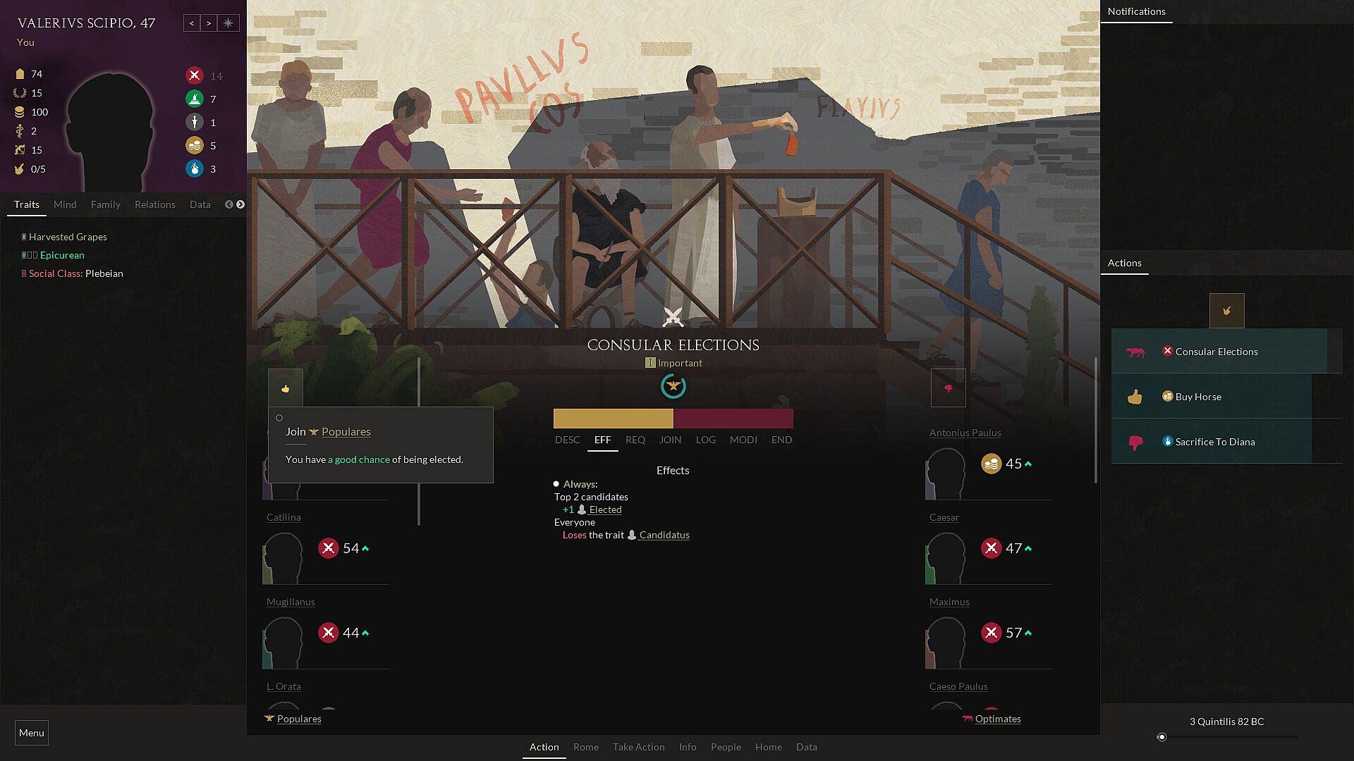 Join the Senate and rise through the offices of the Cursus Honorum, starting as a Tribune or Quaestor and making it all the way up to Consul and beyond – perhaps even Dictator or Augustus, Emperor of Rome?