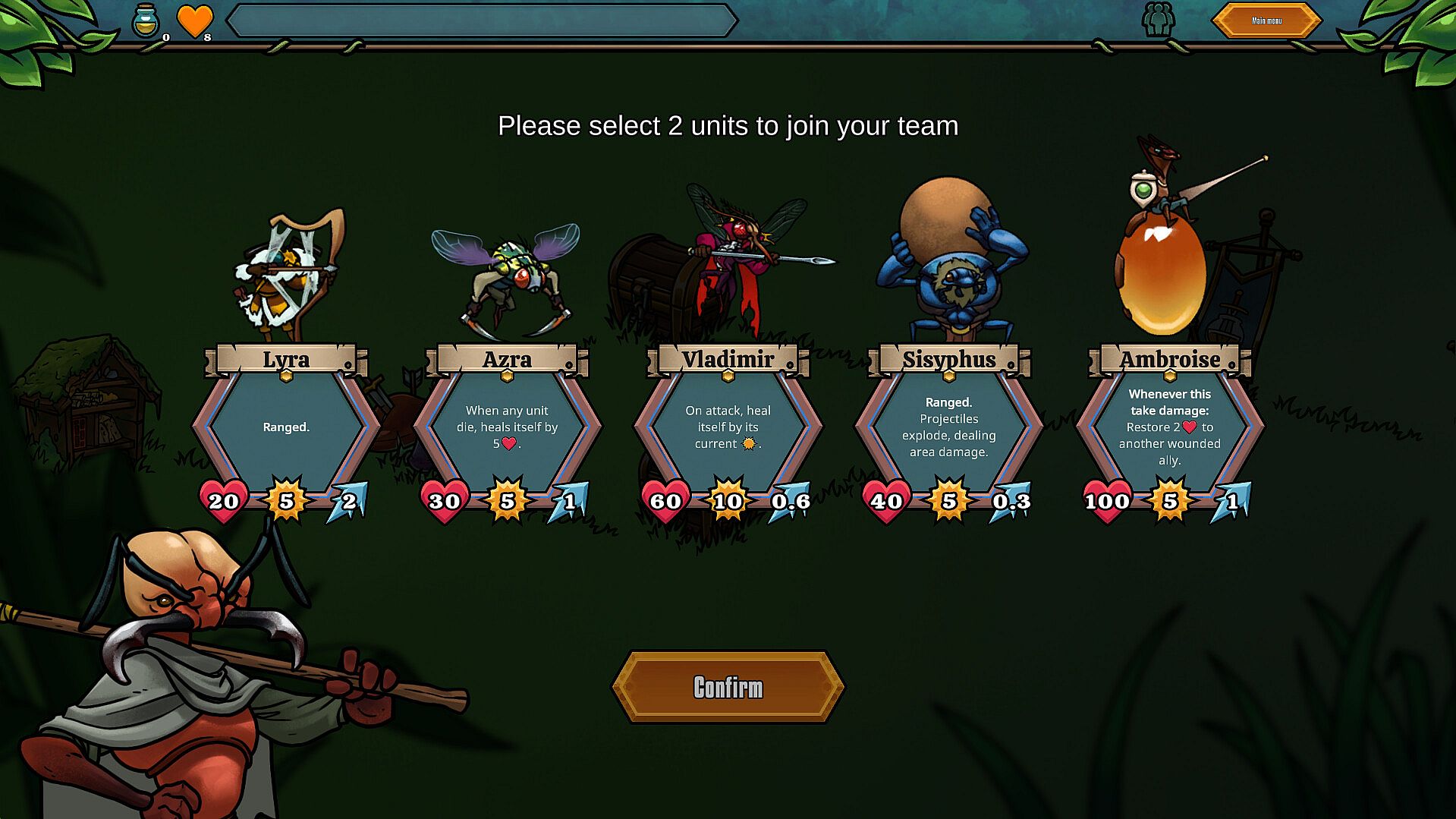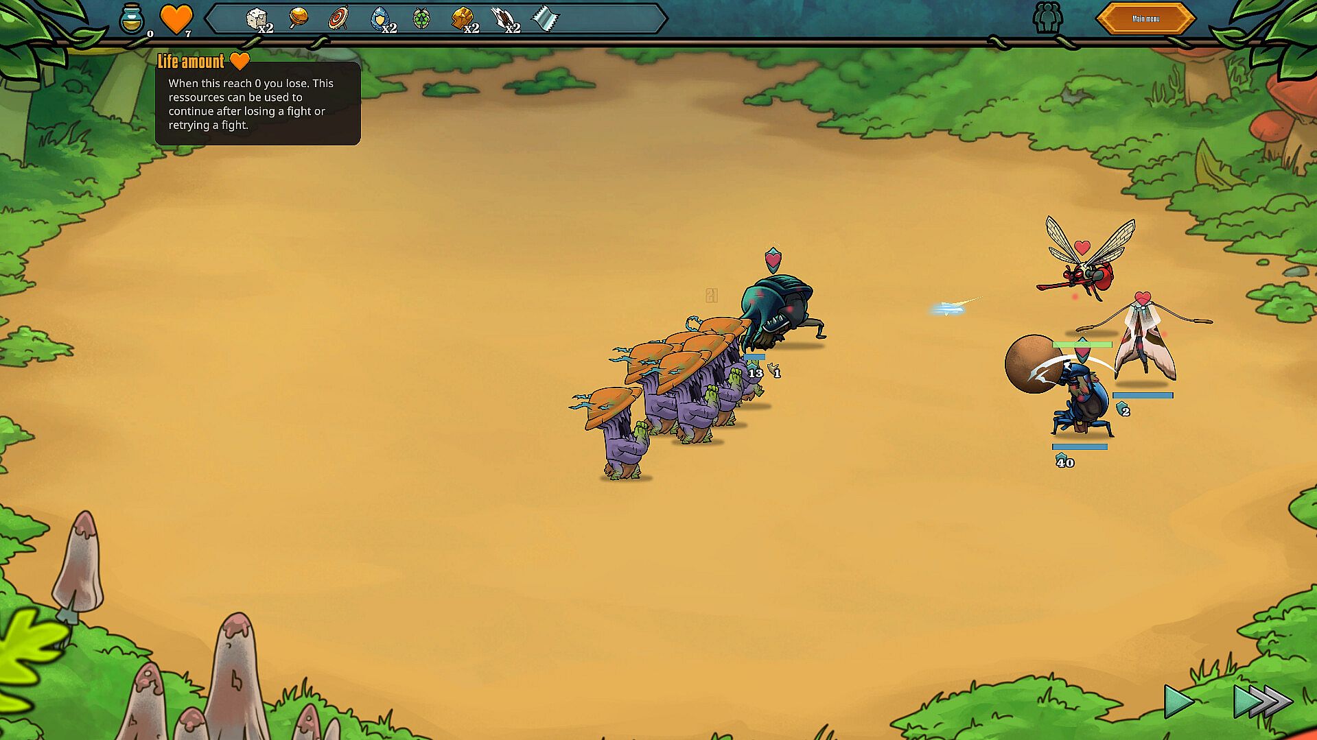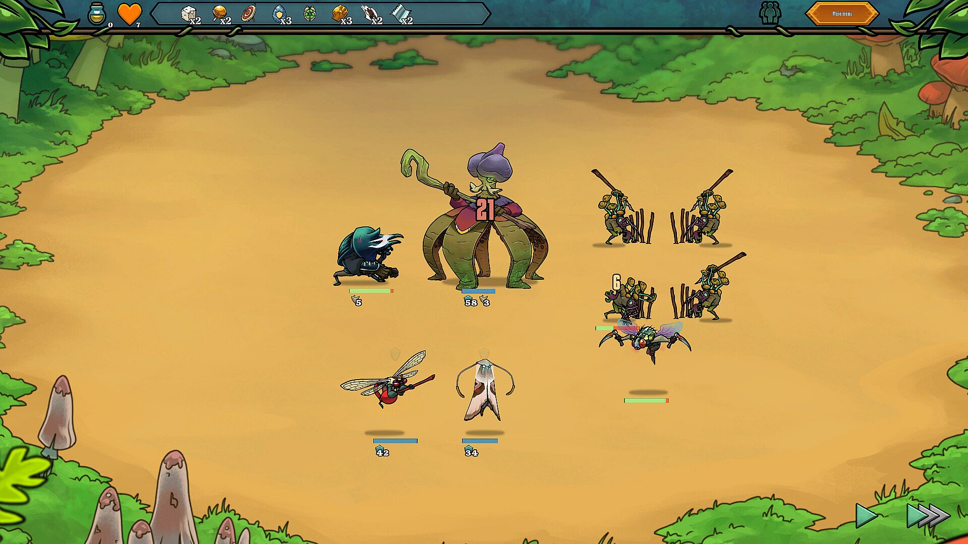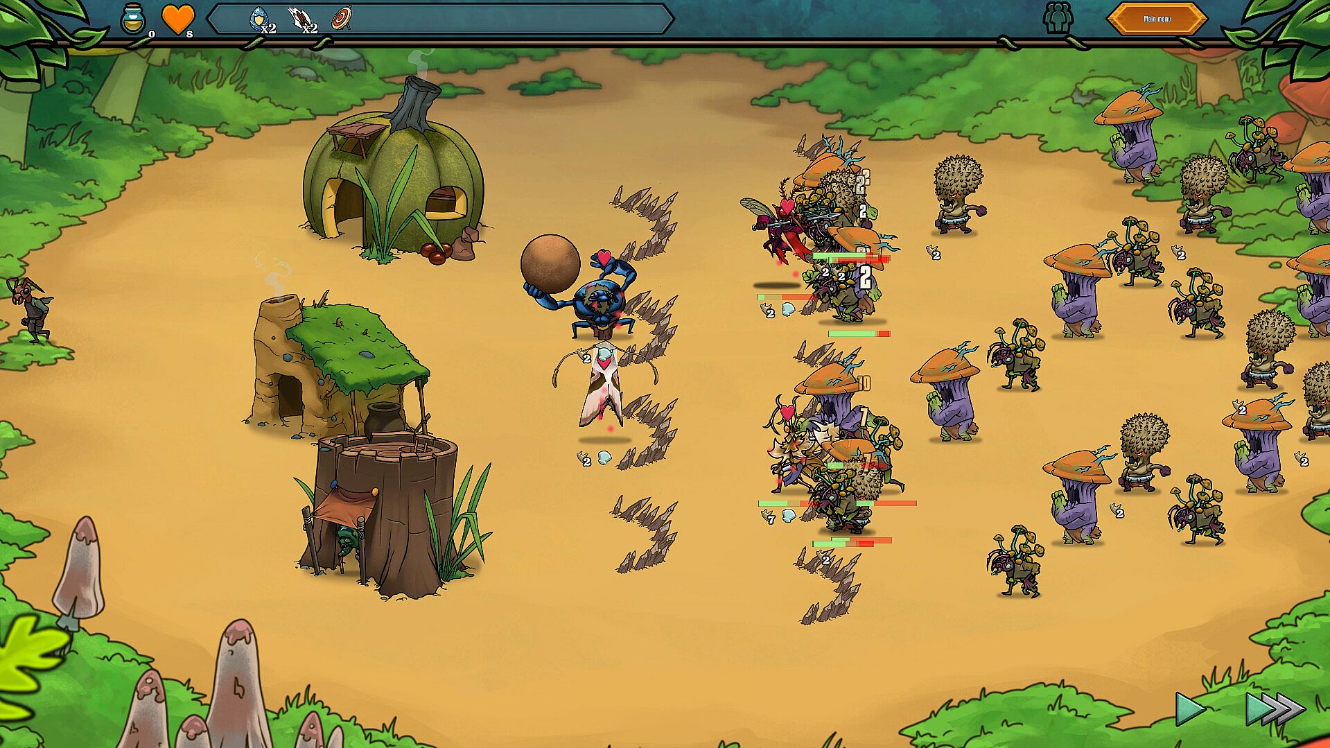 The kingdom is threatened by the mysterious Fungomancer. Unite the clans and face off against this common enemy. Choose unique insect with their specific abilities, focus on their synergies and place them strategically to overcome the dangers that come your way!