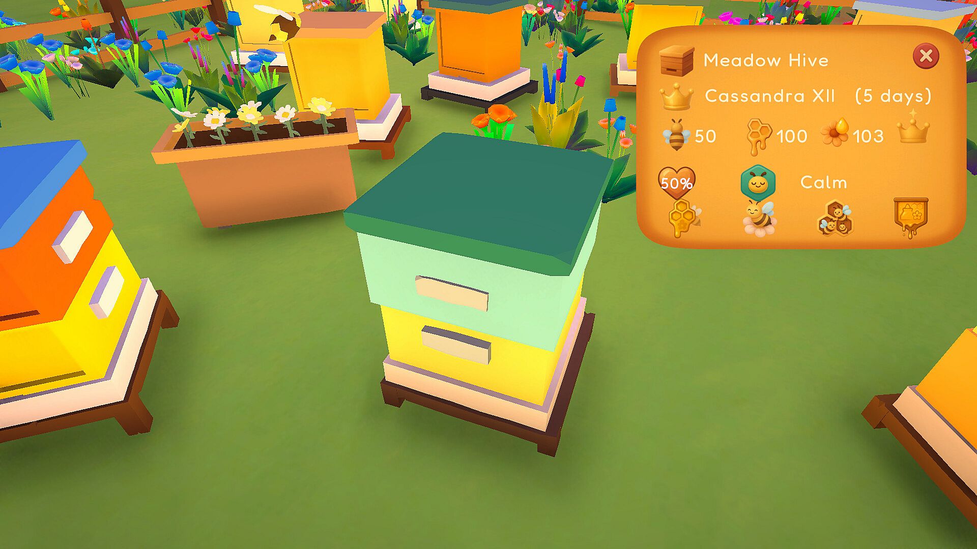 Hive Haven is a cozy beekeeping sandbox about tidy systems, warm colors, and the joy of turning frames of honey into something beautiful. Move and rotate real hives, run the extractor, filter and bottle, melt wax into candles, plant flowers, and keep a calm yard humming.