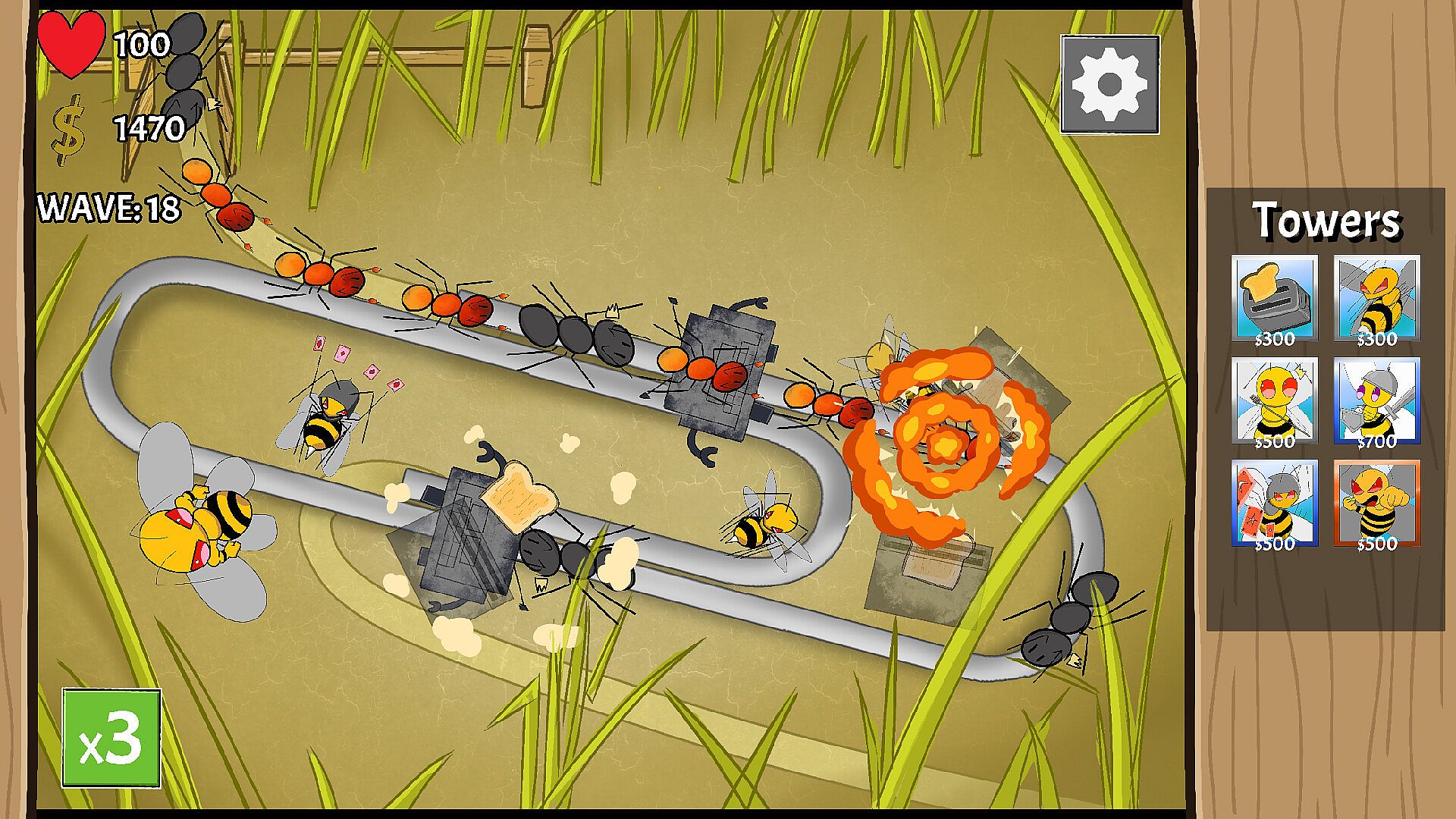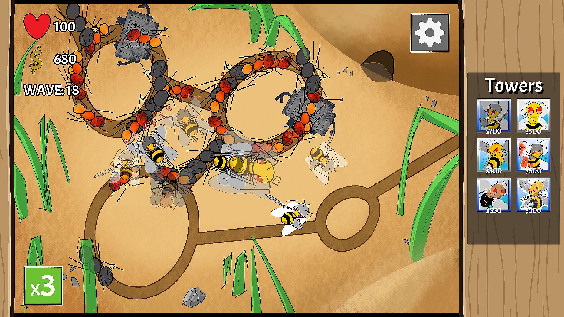 Pick a side to fight for—Ants or Bees—and defend your colony against the other! Collect your insect army and use it to defend the hive in an awesome tower defense adventure, brought to life with hand-drawn visuals.