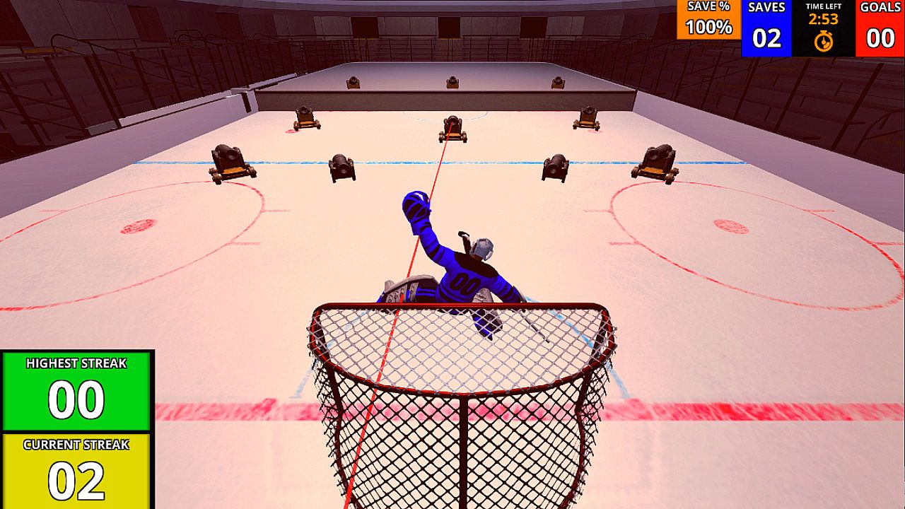 Hockey Camp - Goaltender presents the opportunity to compete through a competitive goalie hockey camp. Compete against other goalies on the leaderboard to prove that you are the best at making saves! Experience high speed hockey pucks, dramatic save streaks, and desperation saves as you fight your way through the challenges and compete for victory on the leaderboards.