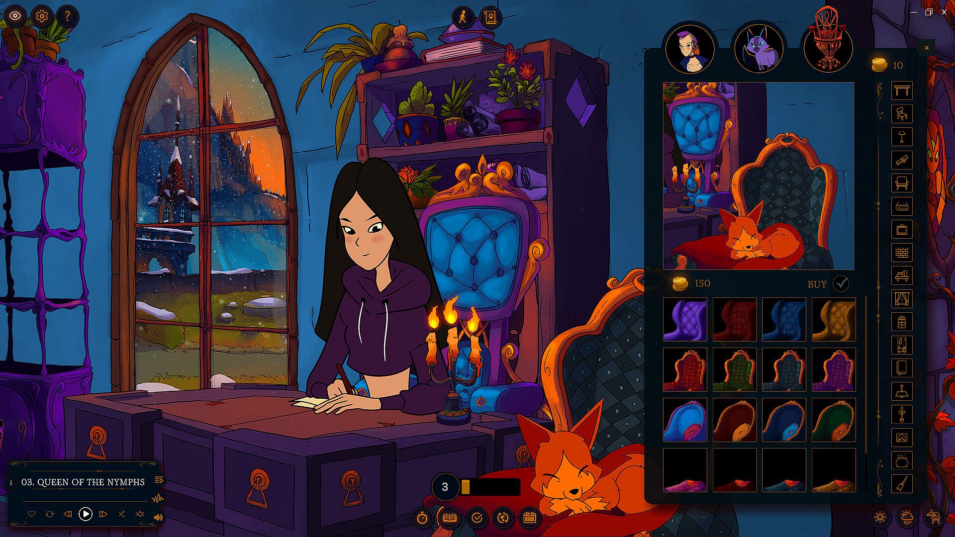 Style your avatar and your adorable shadow fox companion for that perfect cozy setup.​