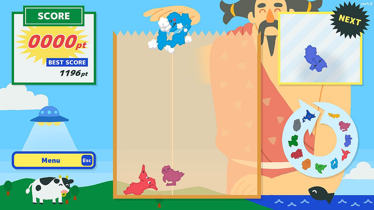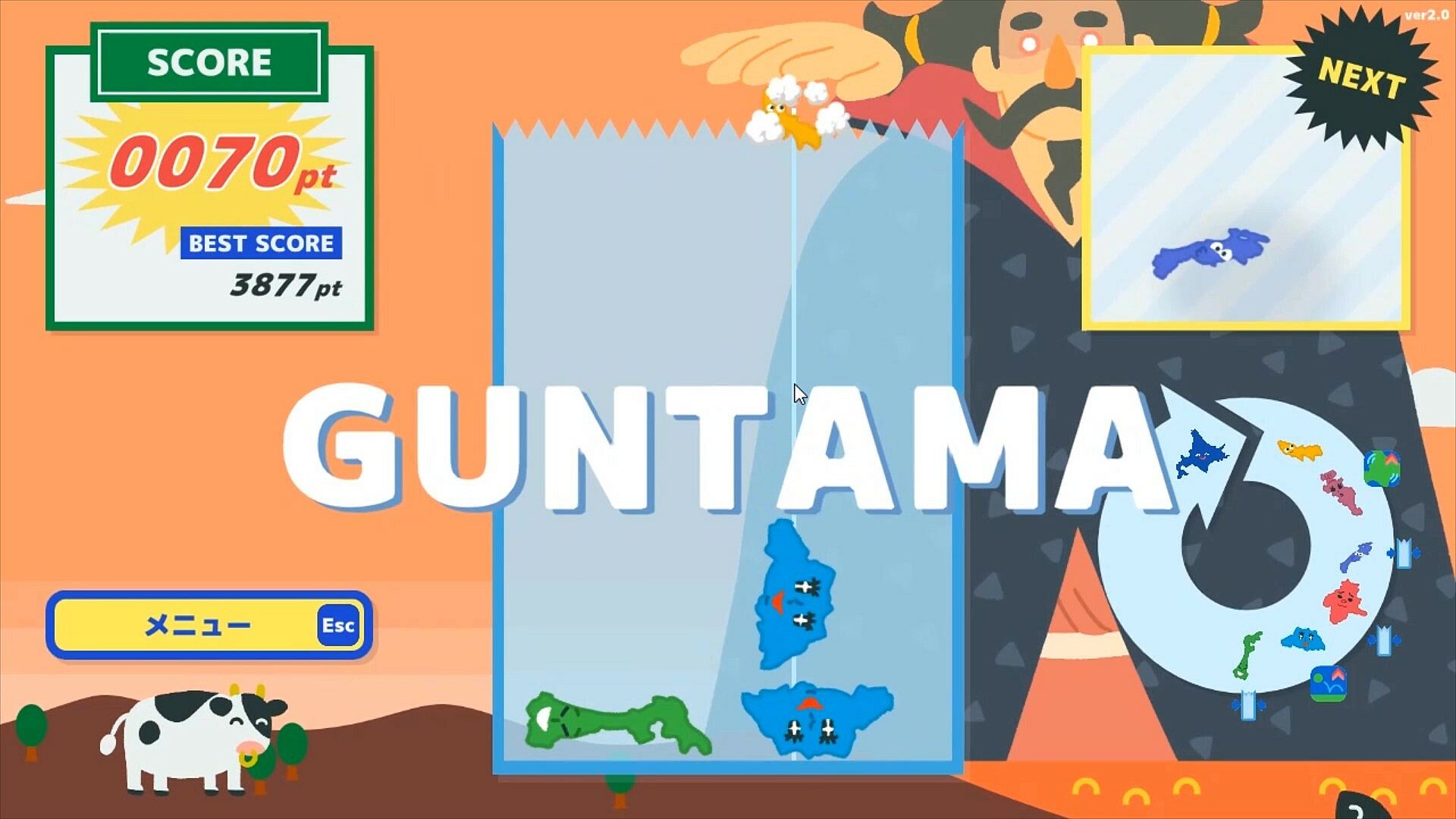 The selected prefectures have different effects, such as a narrower field, different bouncing strength, spinning while falling, and UFOs appearing... it makes a different gameplay each time.