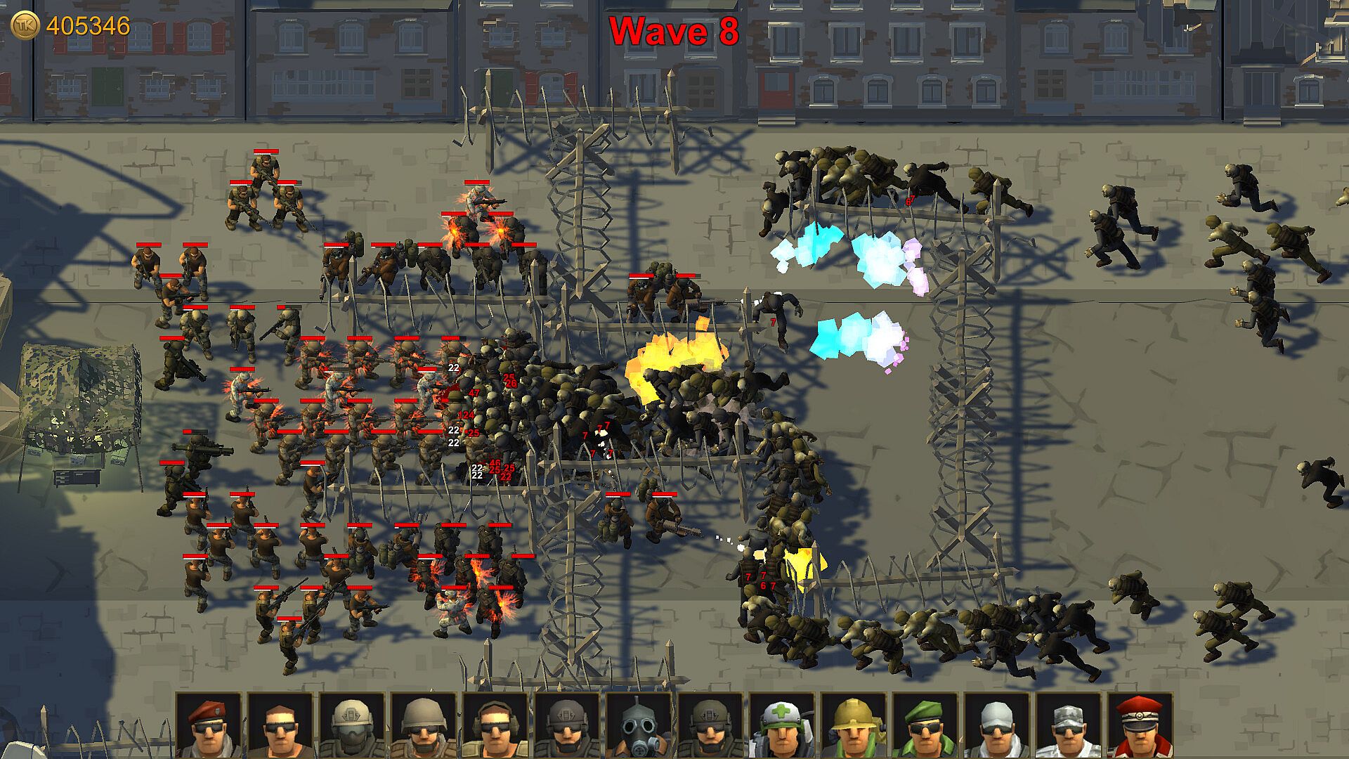 - Medics - heal wounded soldiers around, hold shotguns, skills - rapid treatment
