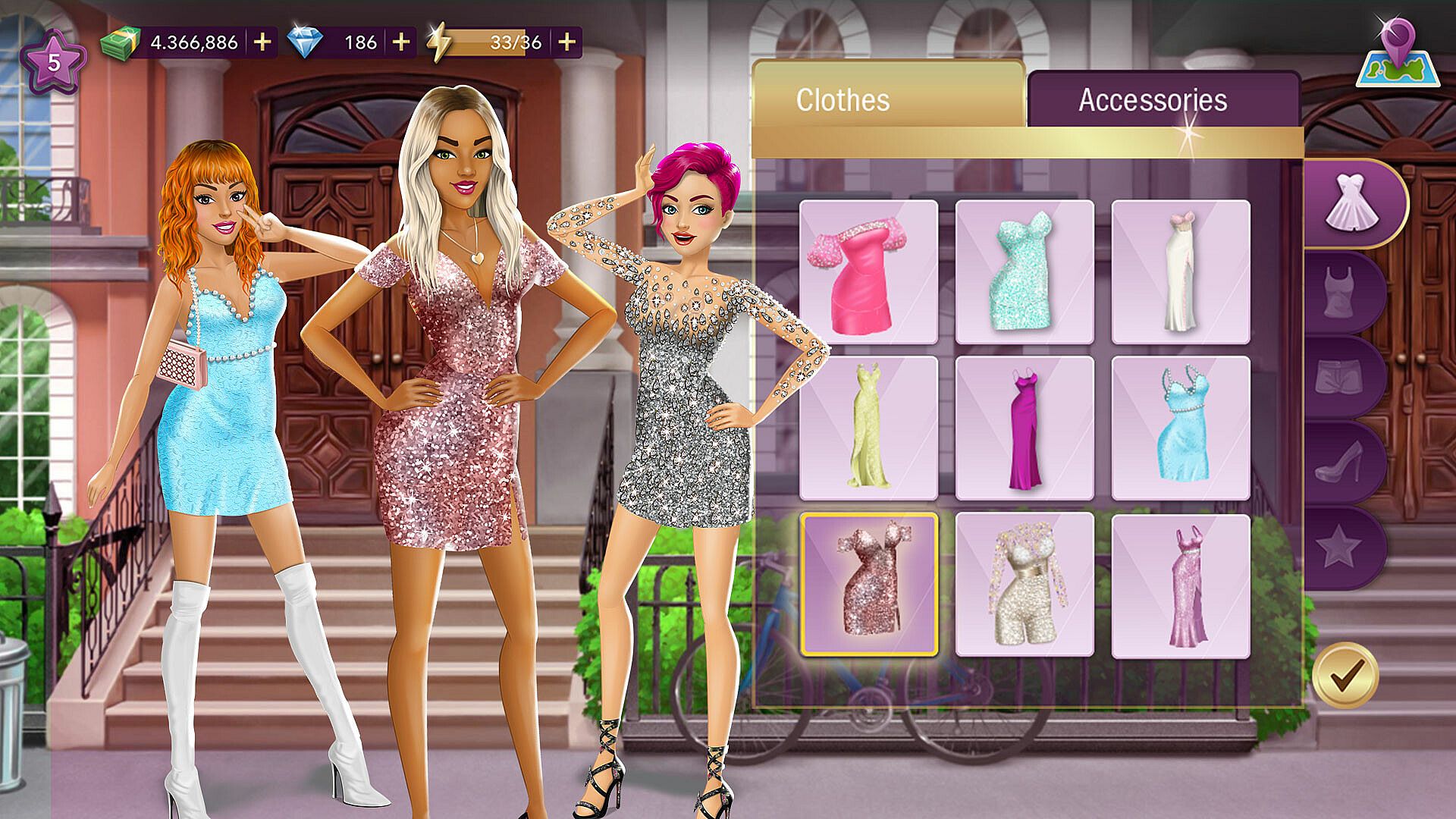 Unlock new destinations like Hollywood, Beverly Hills, Manhattan, and Las Vegas as you progress! Immerse yourself in style games and explore glamorous locales, from luxurious penthouses to chic boutiques, as you soak in the glitz and glamour of the entertainment industry!