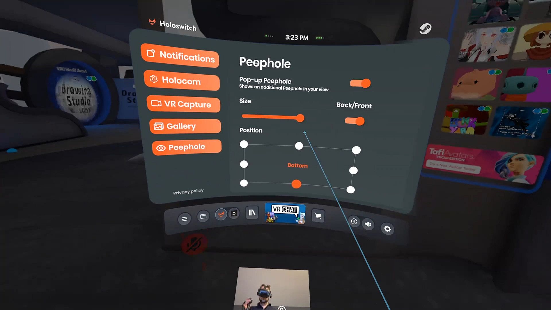 • Streaming of the phone camera to VR. As a free-floating overlay or on the wrist watch to keep an eye on the environment