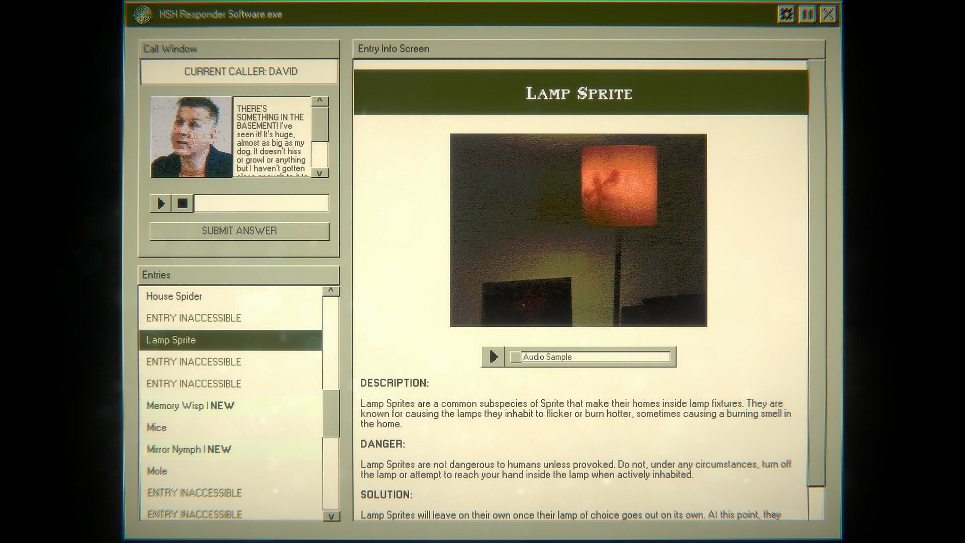 Home Safety Hotline is an analog horror inspired telephone operator simulator where you answer incoming callers' questions about what's inside their home. Read through a vast catalog of common pests and household hazards, and do your best to become an expert in home safety. You will be held responsible for what happens.