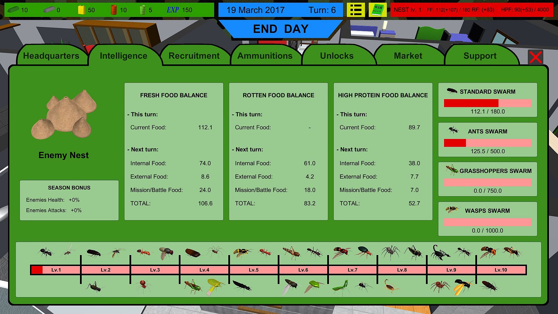 The Bugs will aim to collect as much food as possible, they will use it to create new lethal Swarms and to evolve their Nest. On the other side, you’ll have to prevent that and get the right resources to create an army able to fight off those creatures.