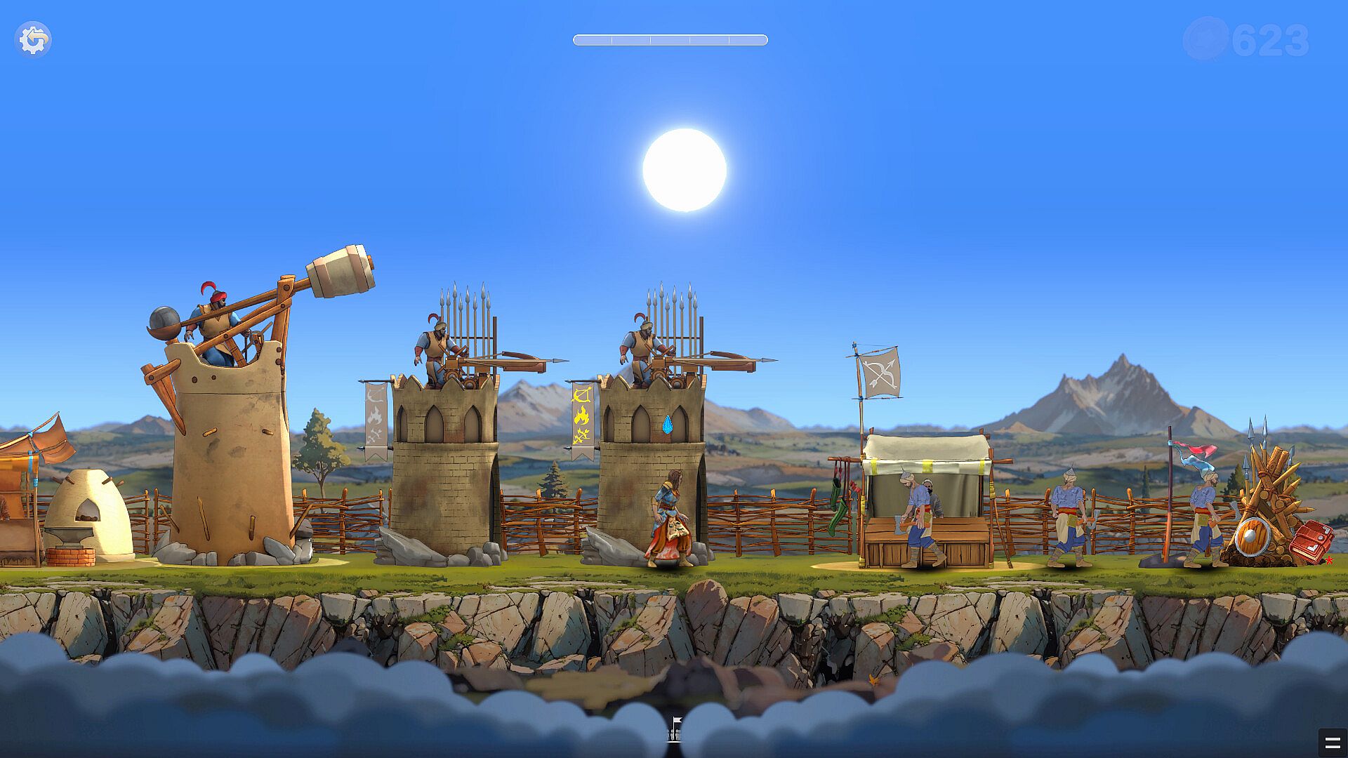 Every tower evolves along a tech tree: first, choose its attack type — catapult, ballista, archer, and more.