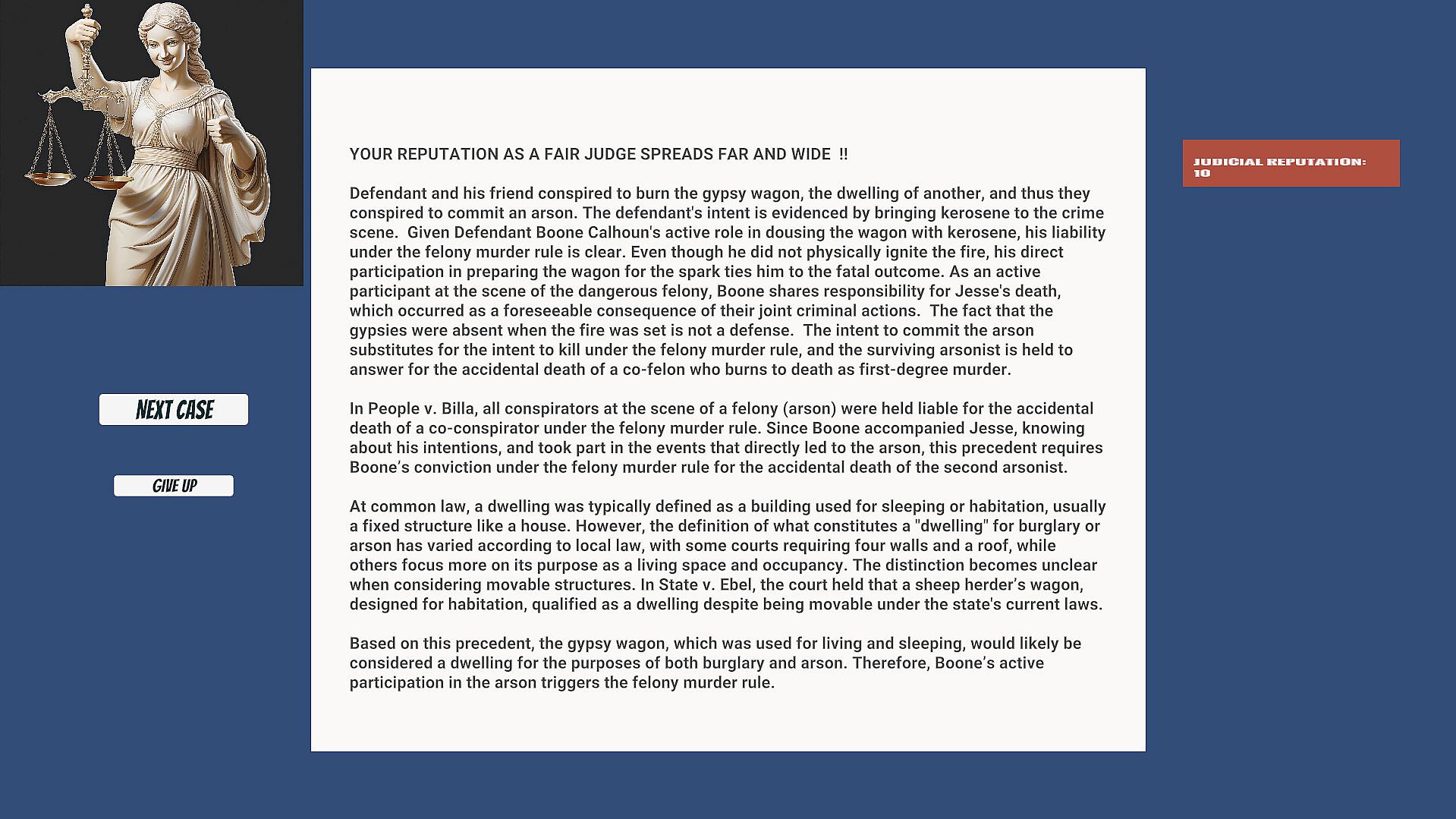 Think you can wrangle the felony murder rule? How about lassoin' the complexities of misdemeanor manslaughter? You'll get all the law you need - your job is to use that noggin of yours to sort the guilty from the innocent.
