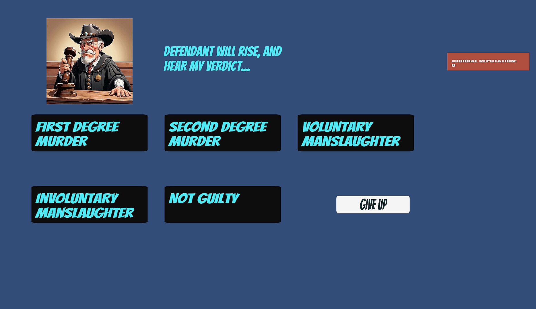Render Your Verdict: Choose wisely! Any incorrect verdict ends your chances of winning a gavel. There ain't no room for error in homicide.