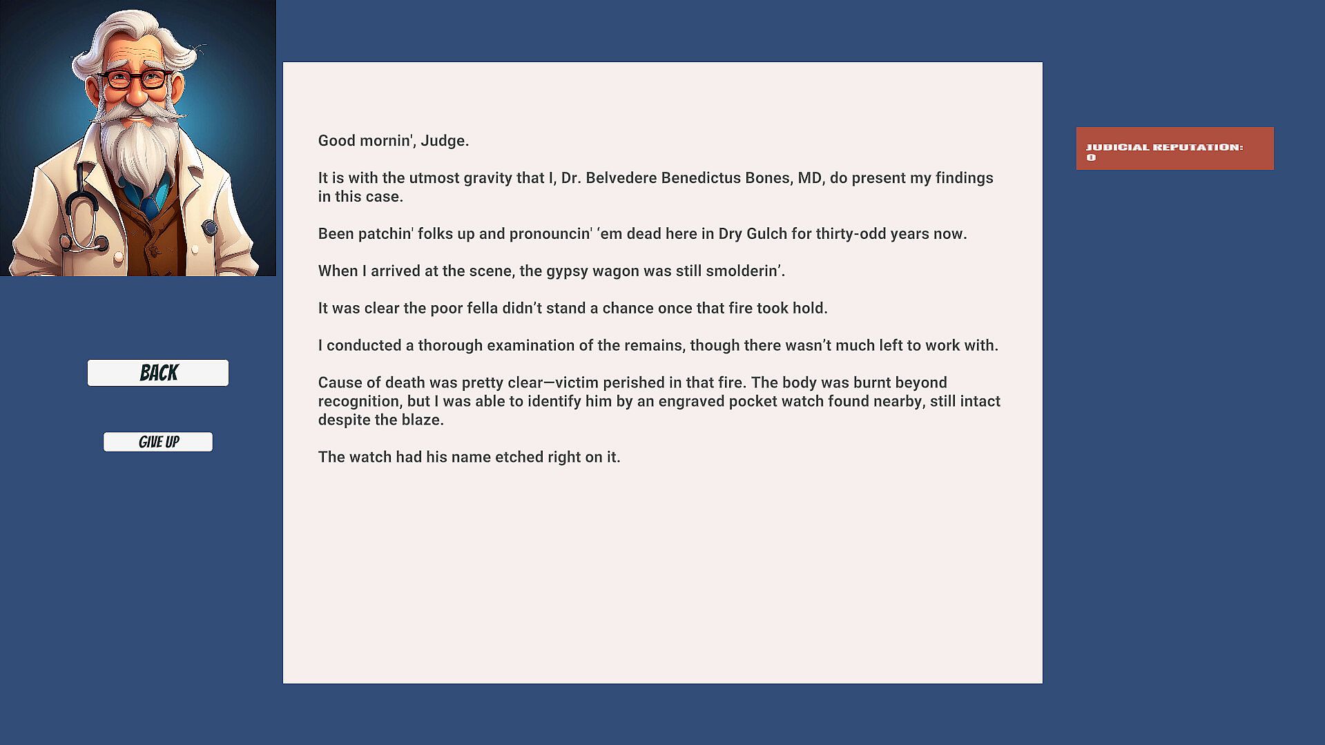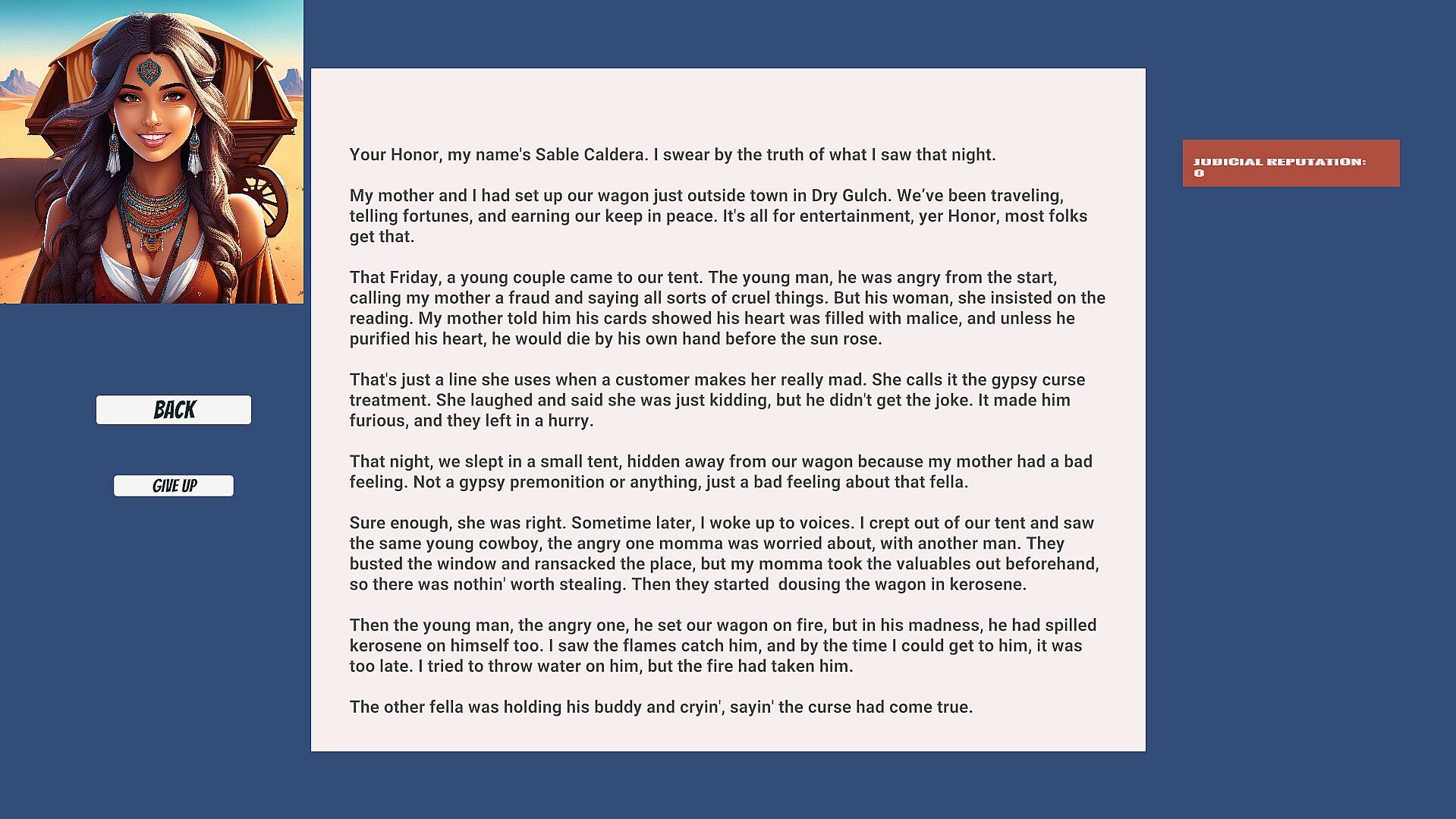 Homicide Judge puts you in the boots of Dry Gulch’s new judge, presiding over 40 high-stakes homicide cases. That's right. These defendants all done waived their right to a jury and put their faith in your hands. It's just you, the law, and a whole mess of life-or-death decisions.