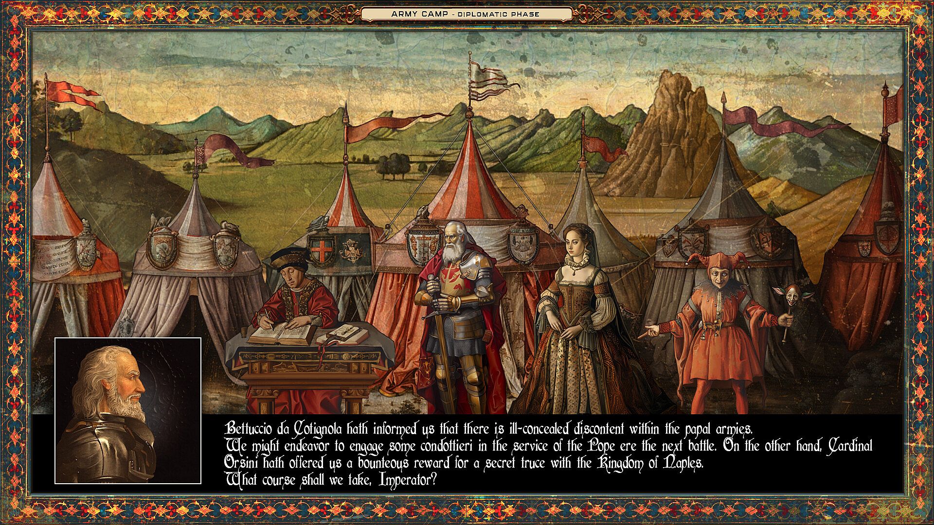 • All the mercenary units present in the Italian peninsula, except that of your family which you control directly, can be allies or enemies: choose wisely who and when to join your army.