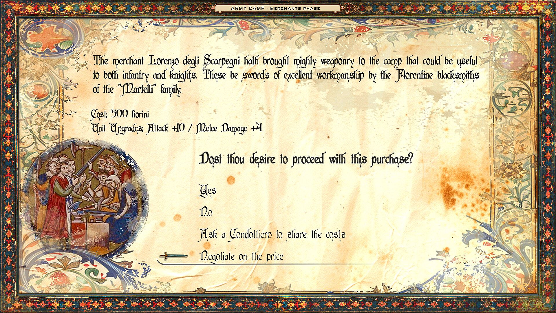 Take on the role of a mercenary captain, leading your company of “Homini d’Arme” into several battles often difficult and far from epic or glorious, due to political-diplomatic compromises useful for preserving your expensive army, made up of many mercenary captains who, like you, are war entrepreneurs.