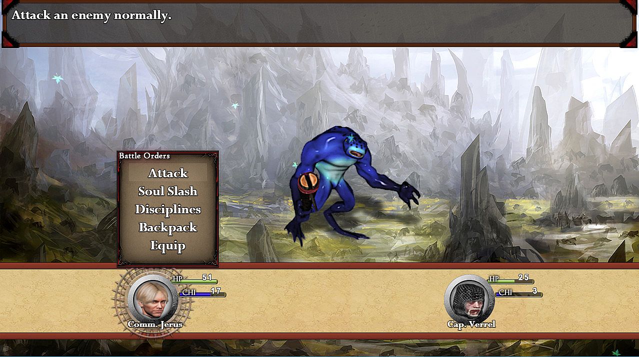 In this game, you play Commander Jerus, a decorated veteran soldier who has been stranded in a hostile part of the realm. You are joined by your long-time friend and soldier Captain Verrel, whose bursts of rage can inflict much harm on his enemies. Your goal: To find and defeat the evil Cryum, end the long war and return to your family.