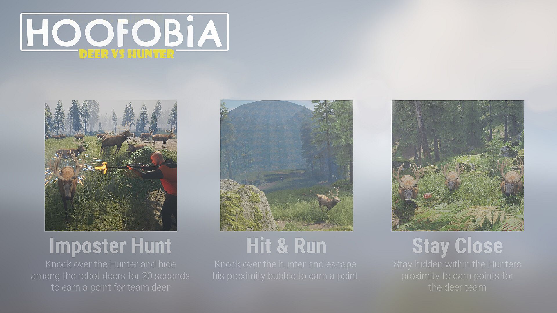 Hoofobia is a chaotic 1v3 multiplayer game of deception and survival. Enrage the hunter in multiple game modes with a dozen maps.