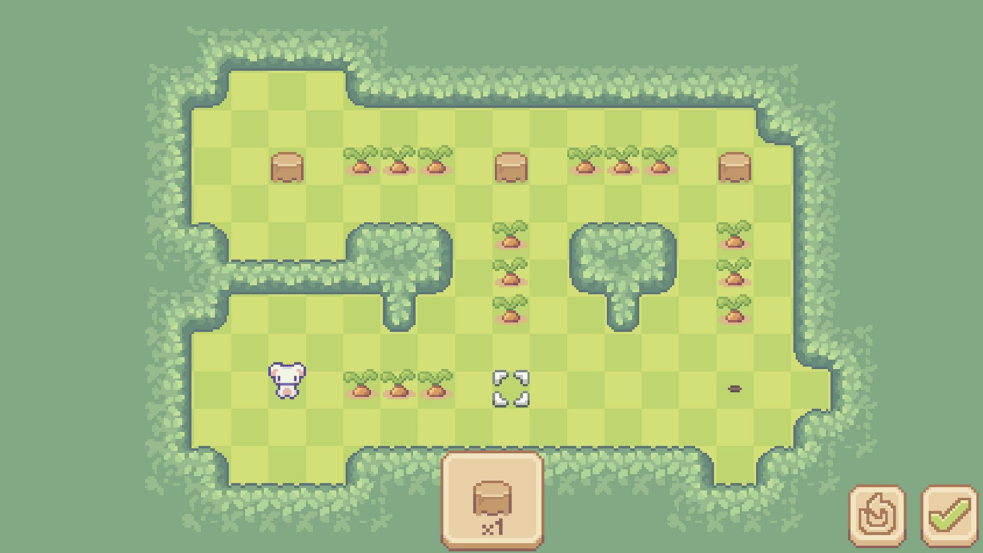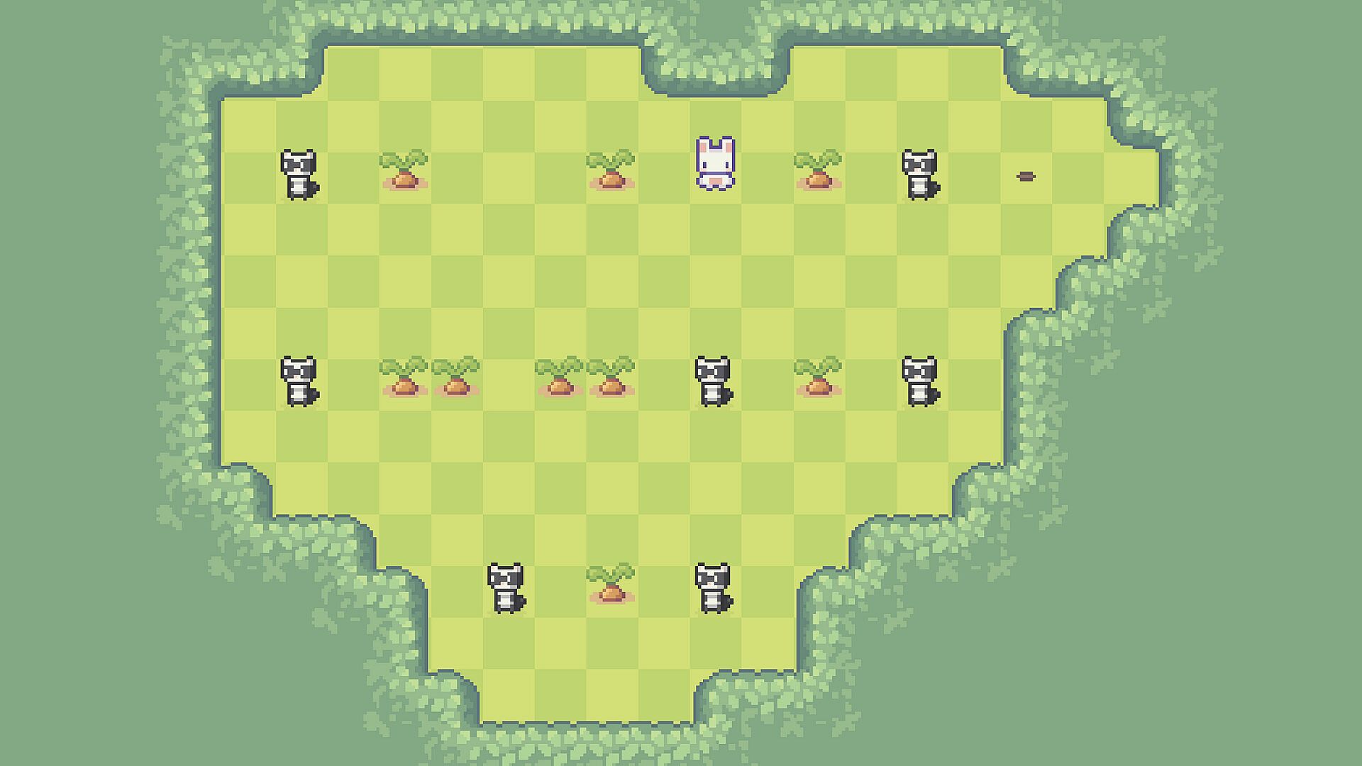 To progress, plan routes that let you gather every carrot and unlock the exit.