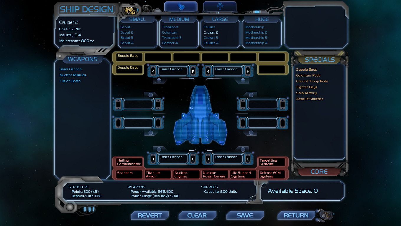 - Design and customize your ships’ weapons and systems based on available technology