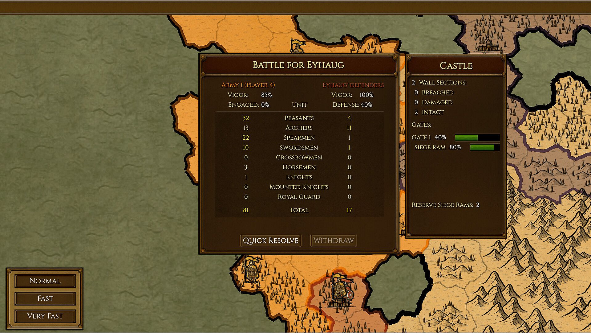 Sieges require careful planning. You must decide how to spend limited siege points and which tactics to employ based on the situation.