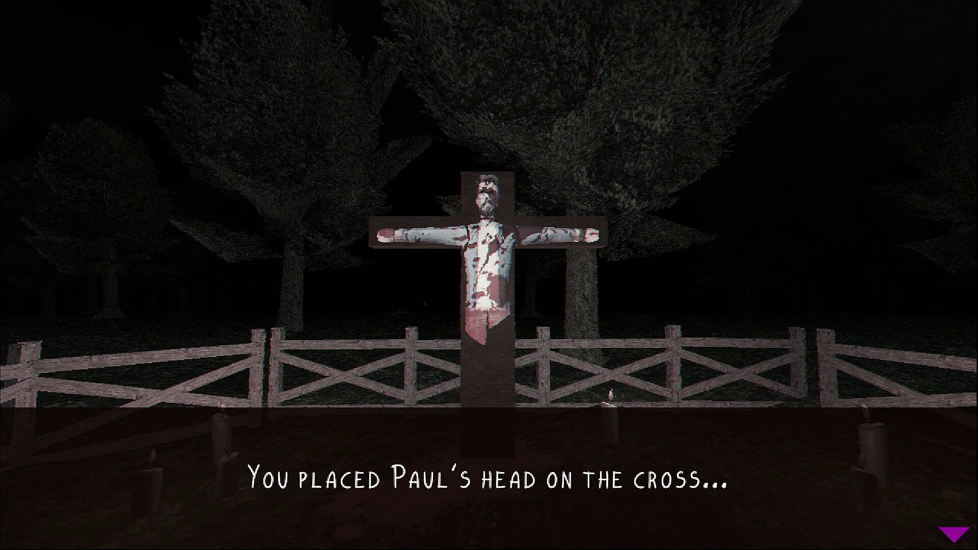 Wake up to a horrifying scream in the middle of the night. Your friend Paul is missing, and the forest holds a gruesome secret. Can you collect and assemble his remains on a cross in the center of the forest? Test your nerves and challenge your sanity in this short horror game.