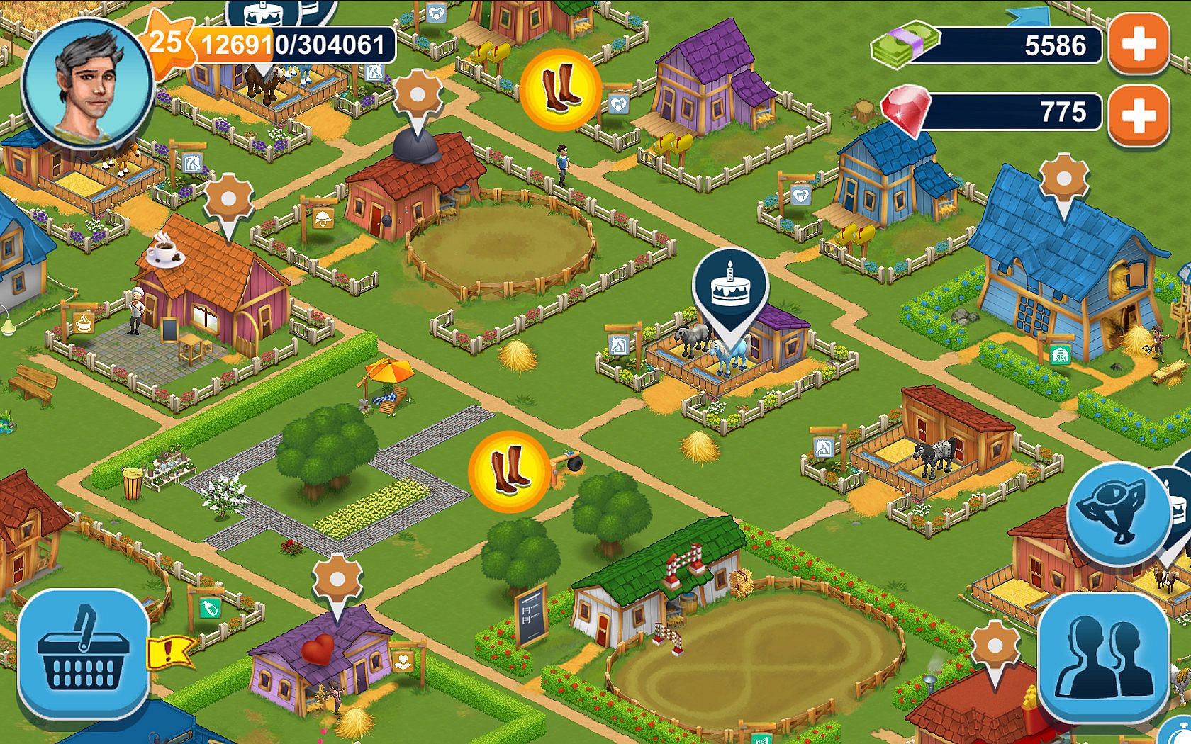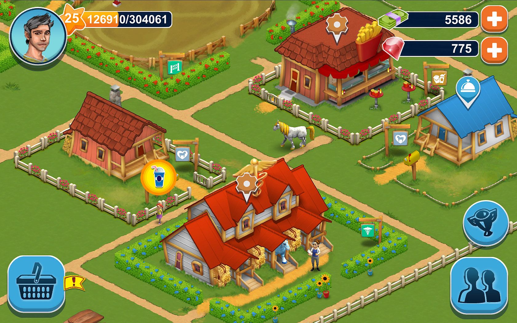 Horse Farm offers you a unique game setting with countless opportunities to customize your gaming experience. Explore the rich and beautifully designed world horse games, as you build your own riding academy. You'll start off by building your first stable and purchasing your first horse. But soon you'll be doing so much more, attracting guests to your horse ranch by providing comfortable lodgings, delicious food, and earning money from the day to day business at your stables. Horse Farm's spectacular array of features includes: