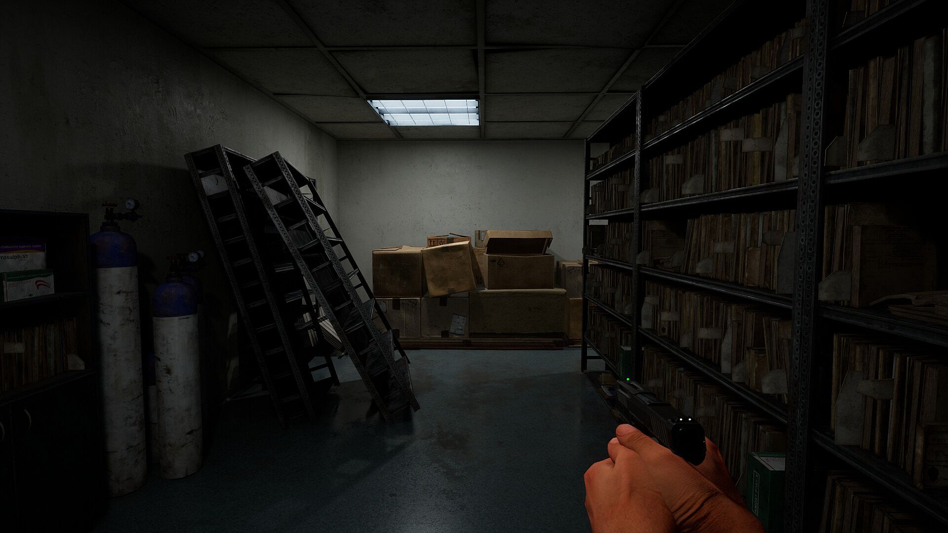 Explore unilluminated rooms by finding something that helps you see in the dark. Avoid spending too much time in them to preserve your sanity.