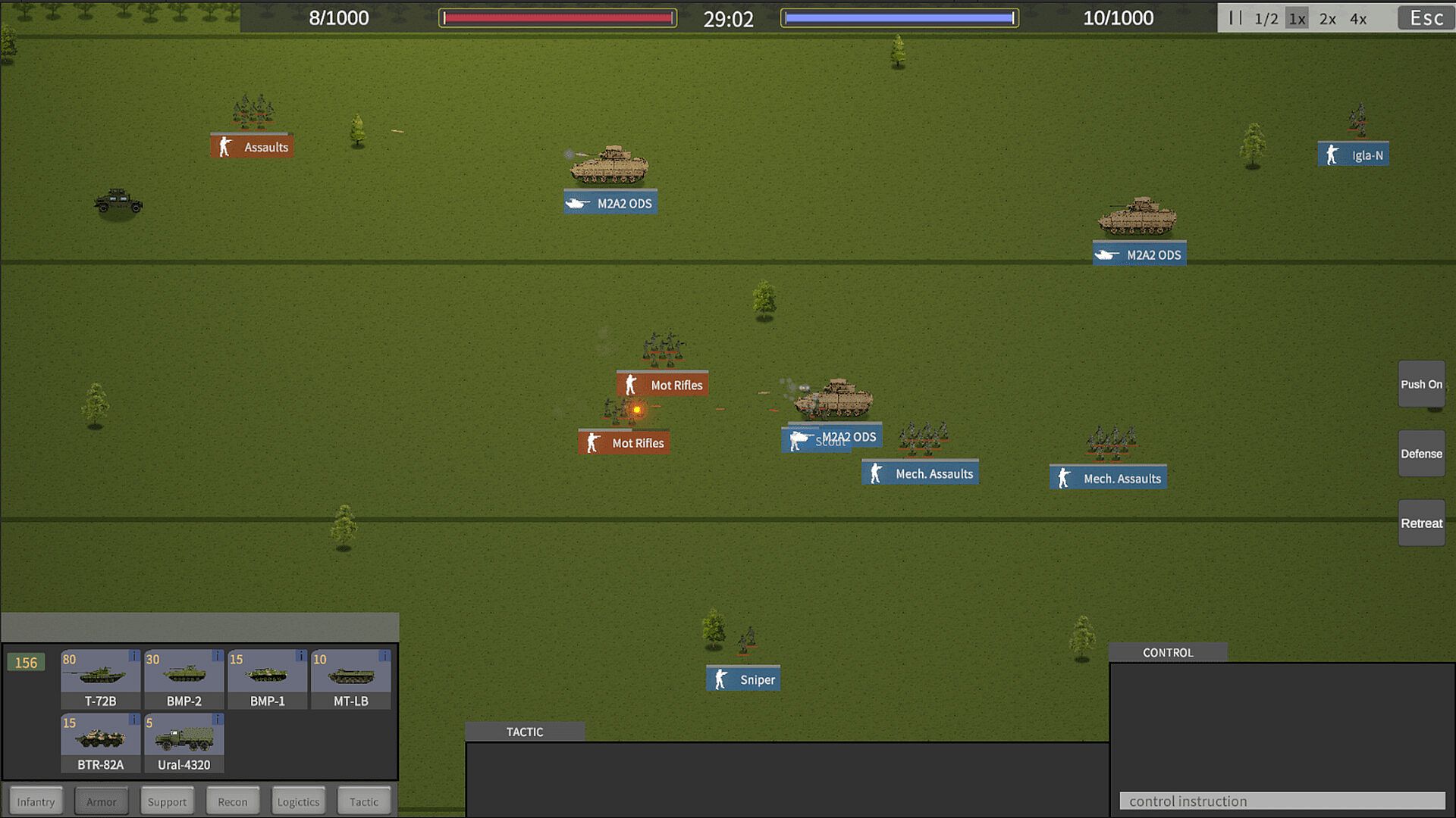 Players don't need to personally operate basic units such as infantry or vehicles, only need to be responsible for deployment. After deployment, the basic units will go to the front line to fight against the enemy on their own.