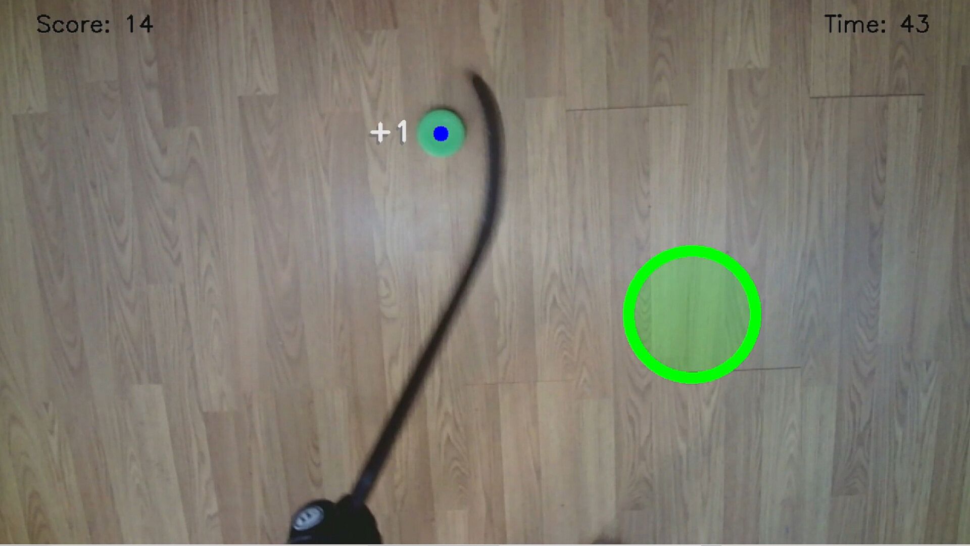 Train while playing. Real‑time color tracking turns your floor into a hockey skills arena.