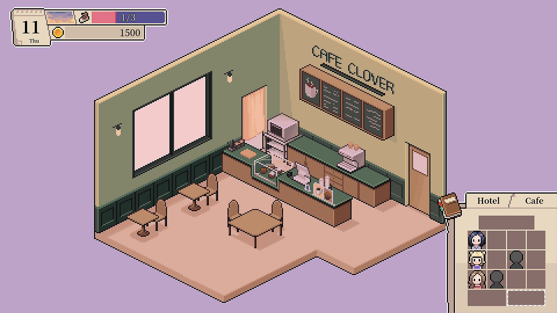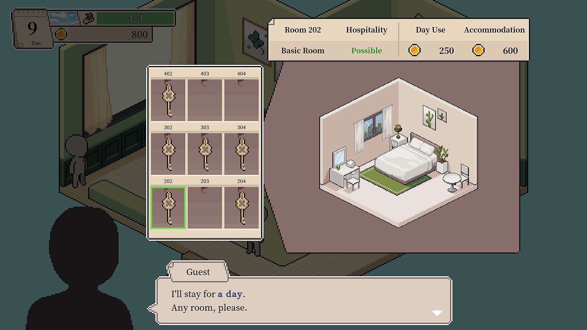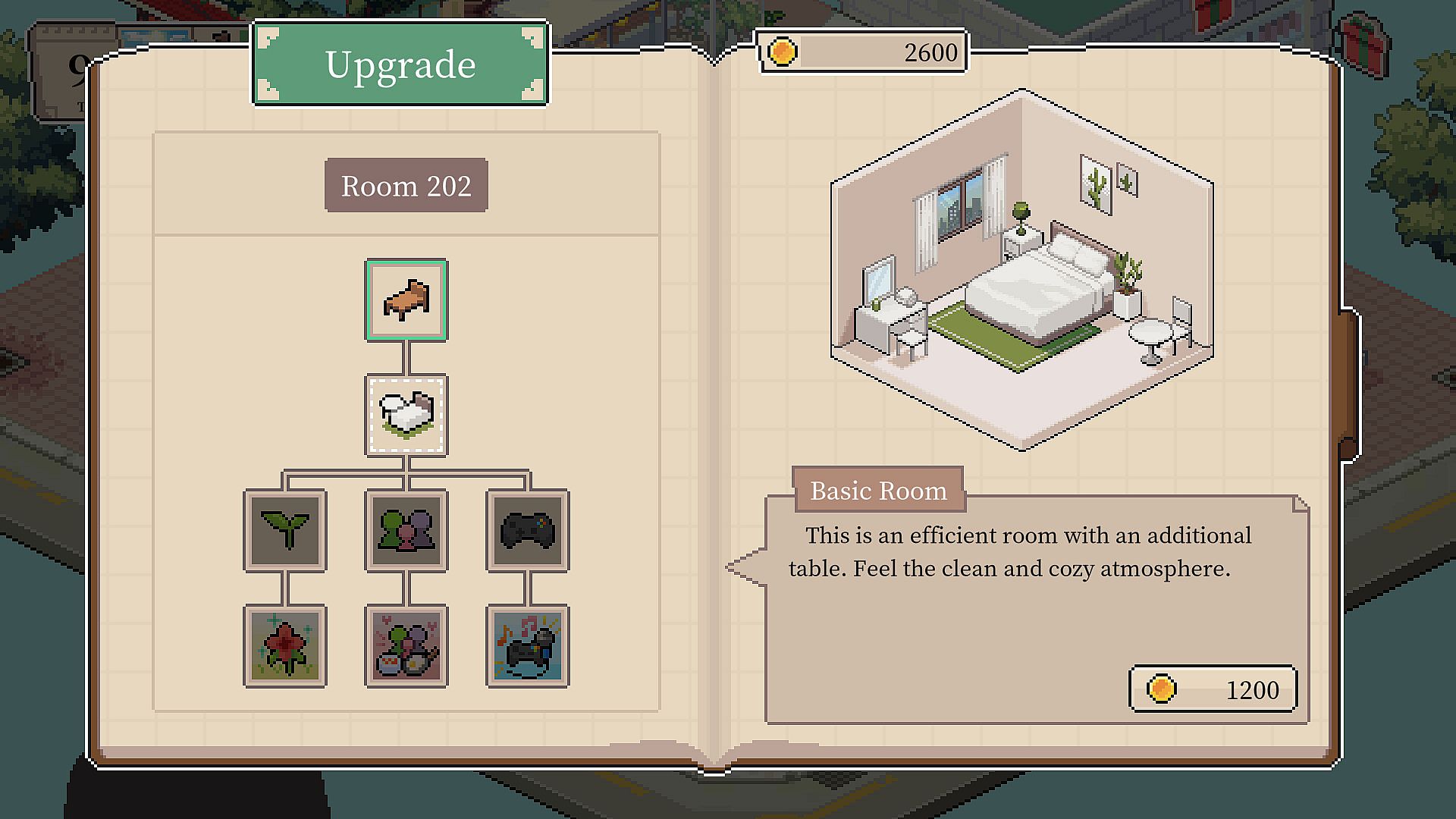 Buy furniture, decorate the lobby and rooms, and attract more guests.