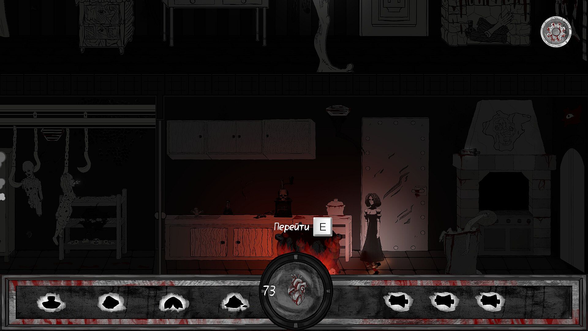 The game is divided into levels. The goal of each level is to find all the necessary items, interact with objects using the collected items to collect a boss trap, kill the boss, collect the angel feather (key) and move on to the next level. While searching for items and collecting the trap, you have to avoid enemies, hide from them in cover and watch your heartbeat.