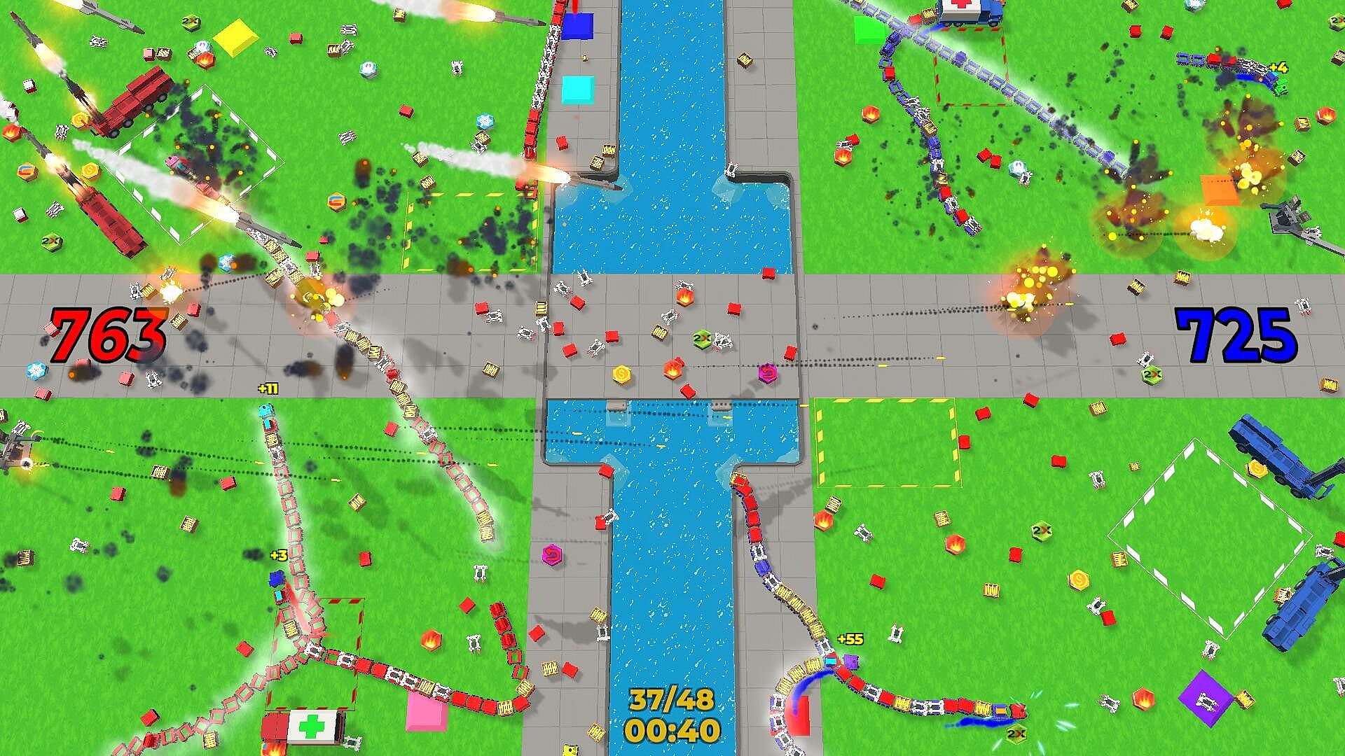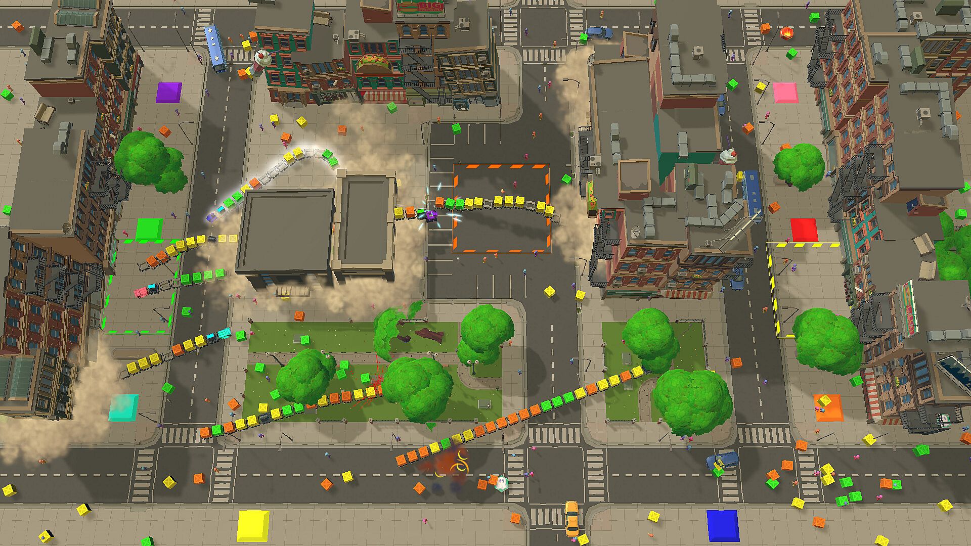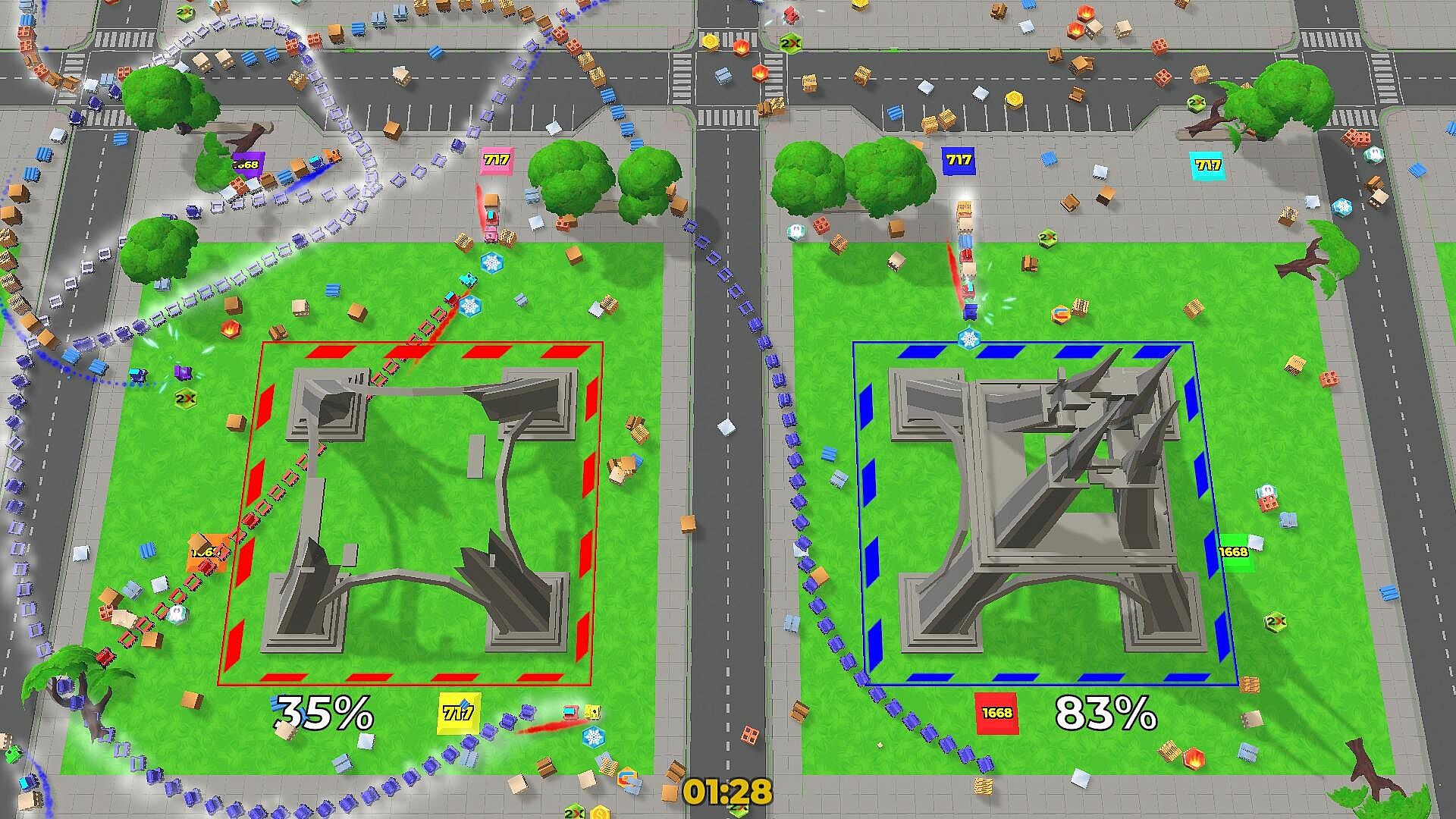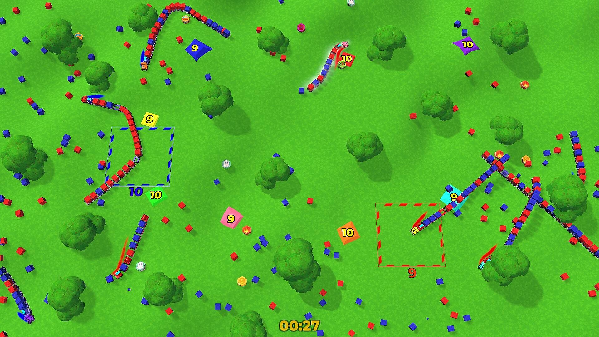 A bright and fun game. Here you will compete in who is the best and fastest builder, who will smash the enemy base faster and who will be able to survive among enemy traps and long entanglements of their own and other trains!!!