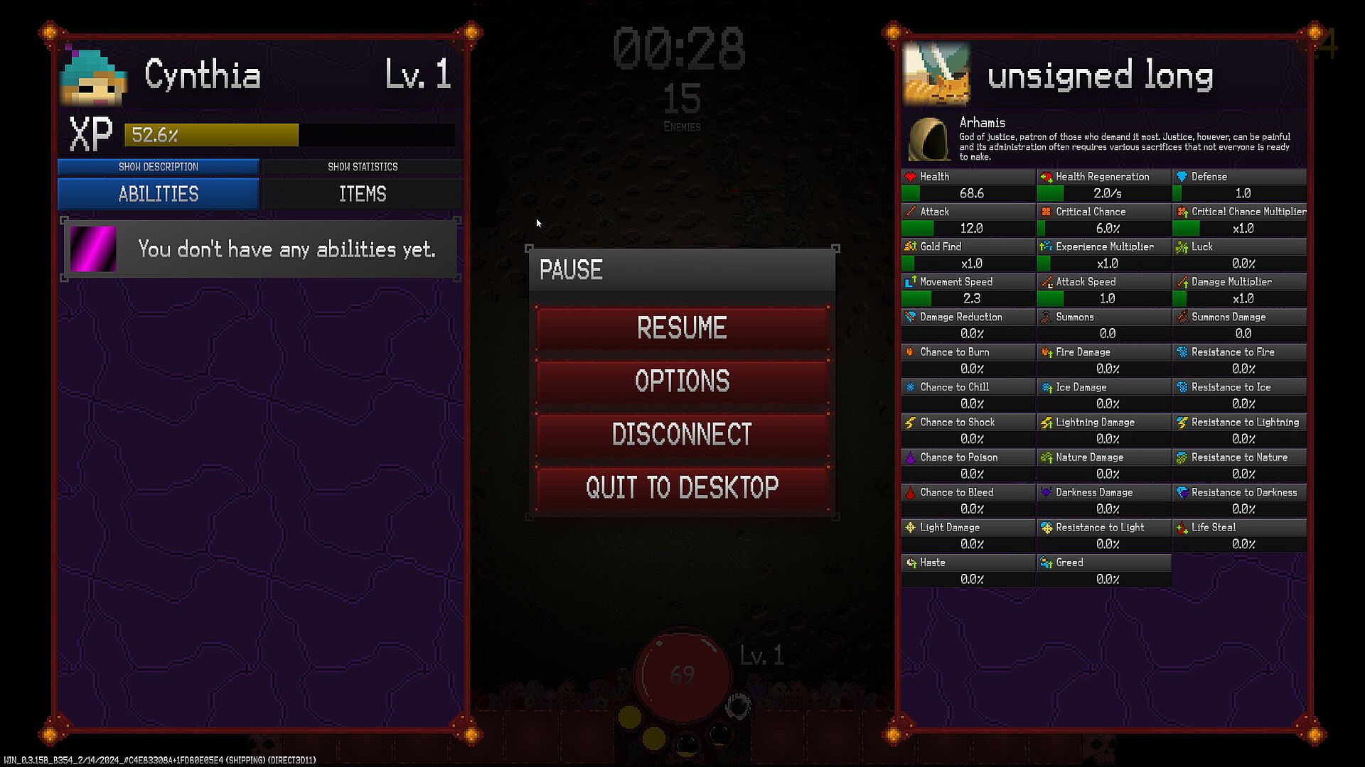 - Achievements: The game implements an Achievement system that allows you to complete collections, unlocking special items, characters, and deities for your future runs.