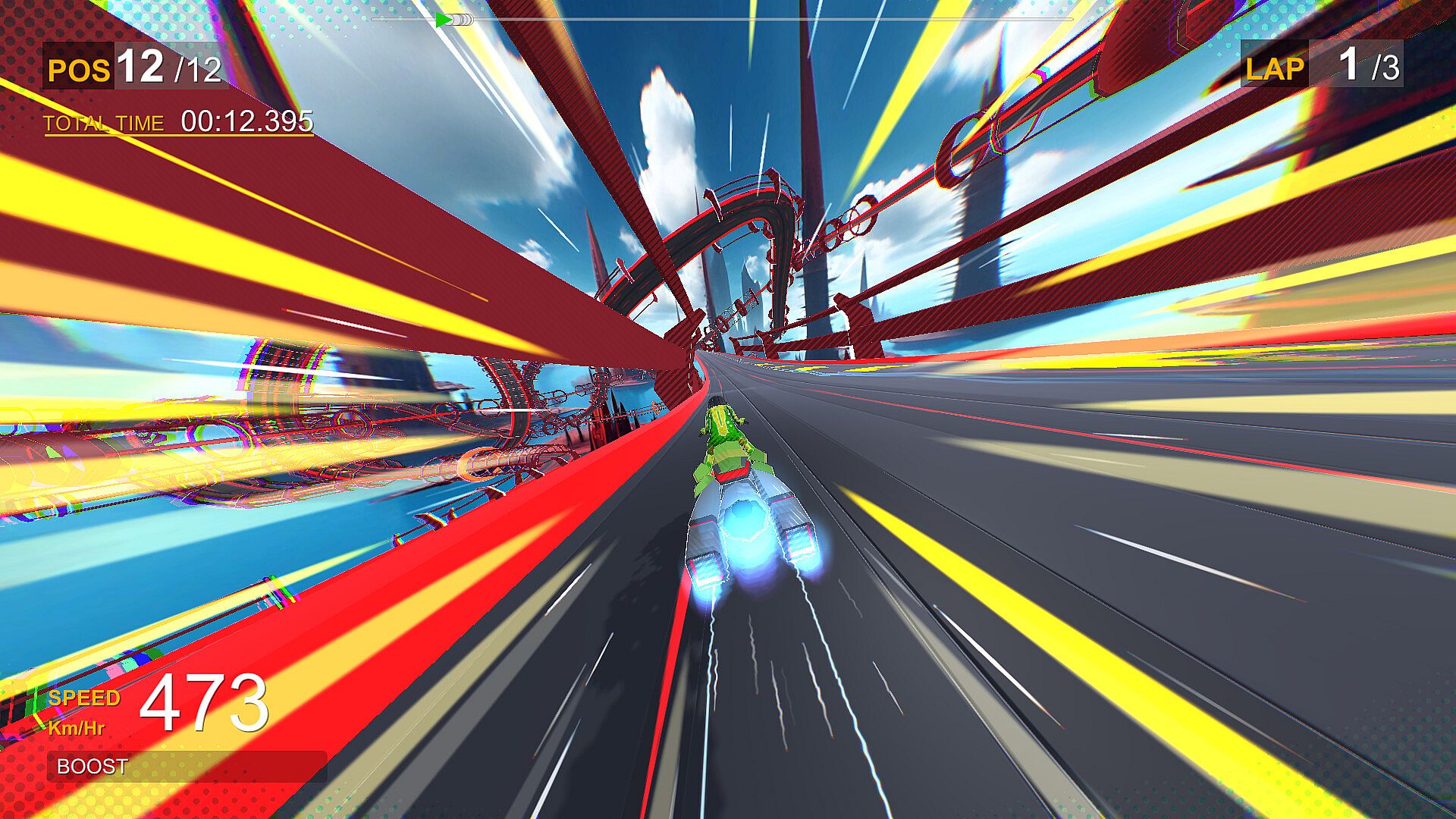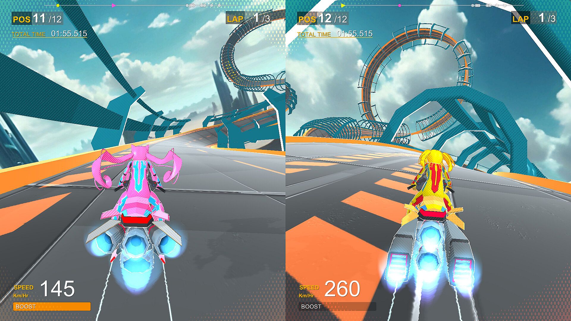 Race on 24 awe-inspiring tracks that float high above the clouds, designed like colossal roller coasters with twists, loops, and hairpin curves that will push your reflexes to the limit that challenge even the most skilled racers.