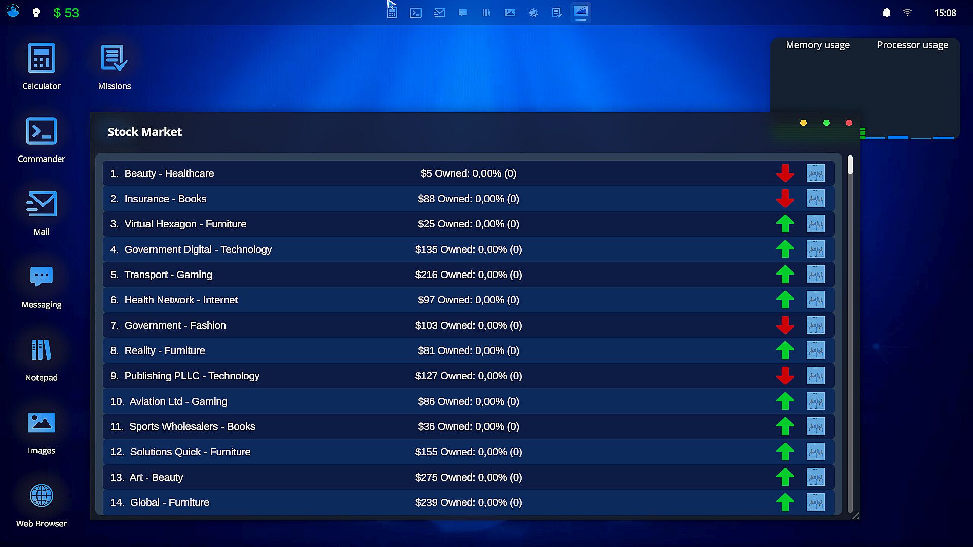 Shape the game world with your choices, manipulate the stock market, and hack into characters bank accounts.