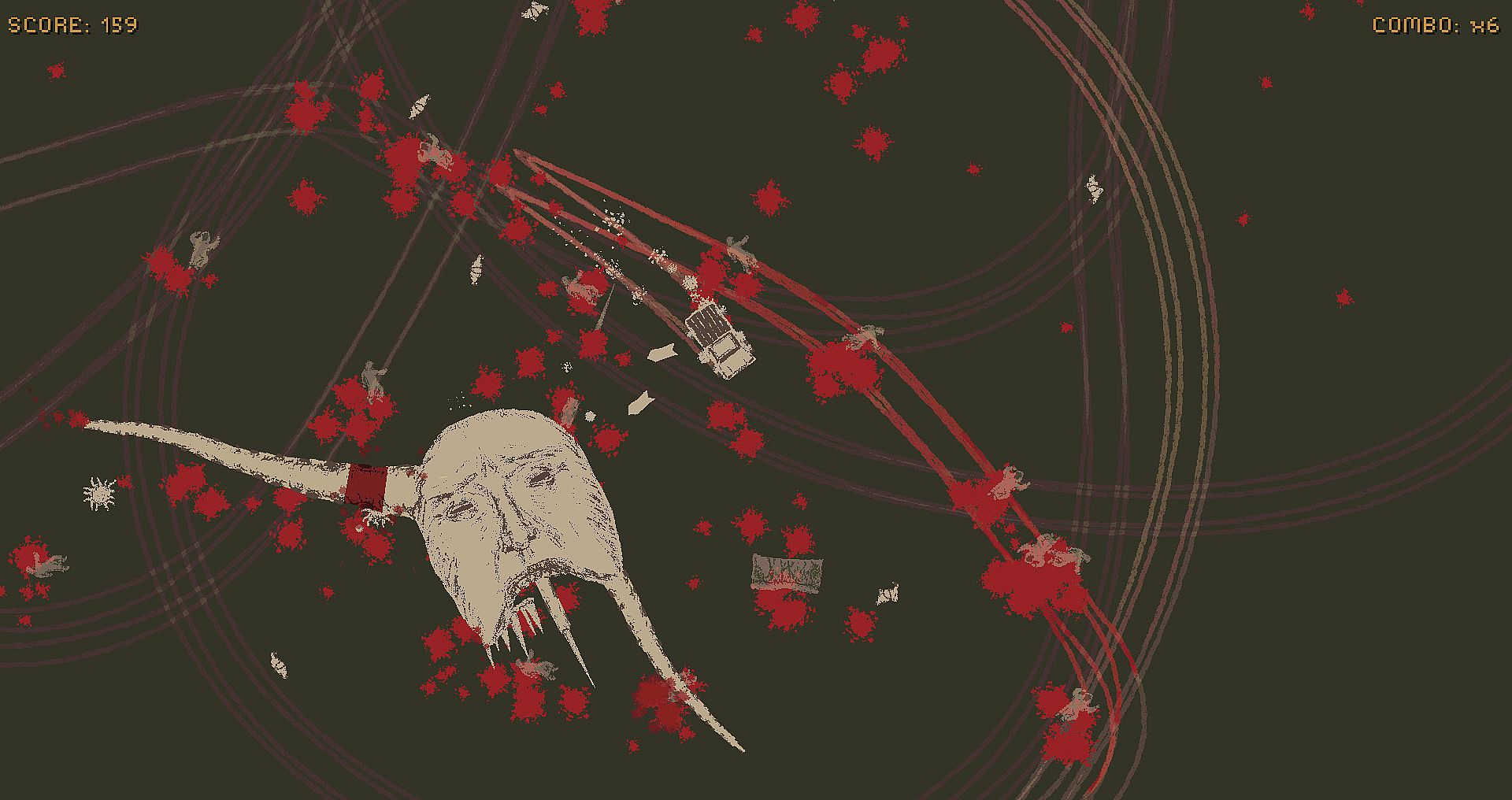 Drive a car through a desert packed with cultists summoning ancient horrors. Smash procedurally generated giant monsters piece by piece in this top-down indie action shooter. Fire guns at endless abominations and smear cultists in short, intense sessions fueled by a weird art style.