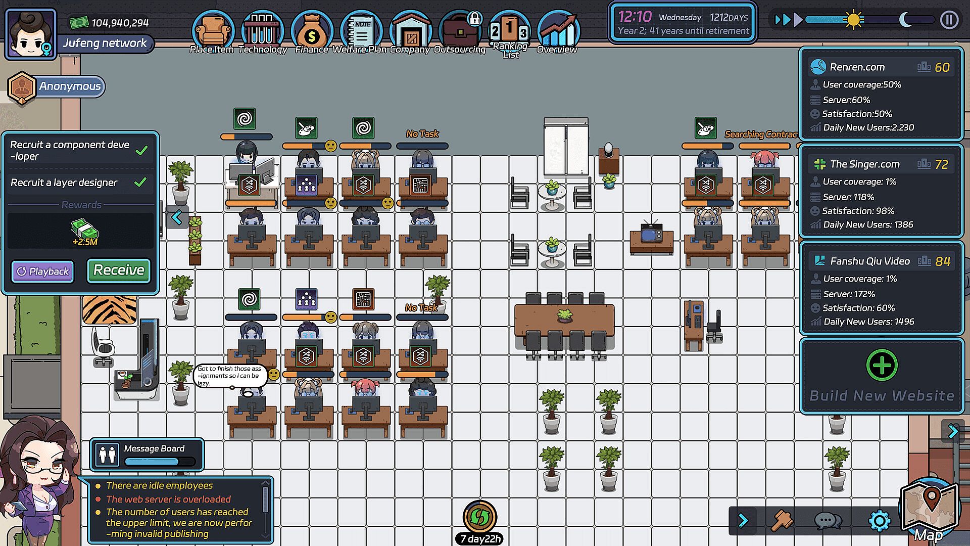A website needs server! Buy server rooms in various cities and regions; keep them running but not overheating!