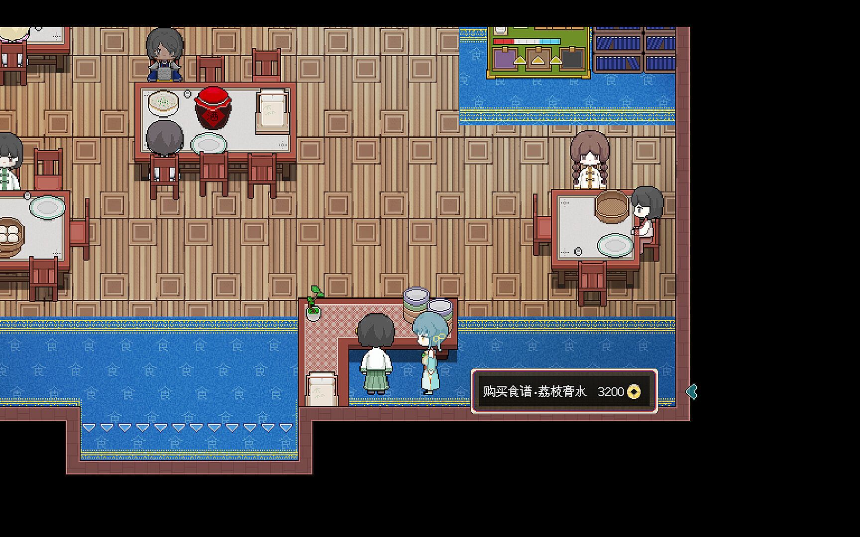 Welcome to Lakeside Teahouse! You play as a cursed girl who must manage a teahouse while uncovering secrets about the curse and the past. :D