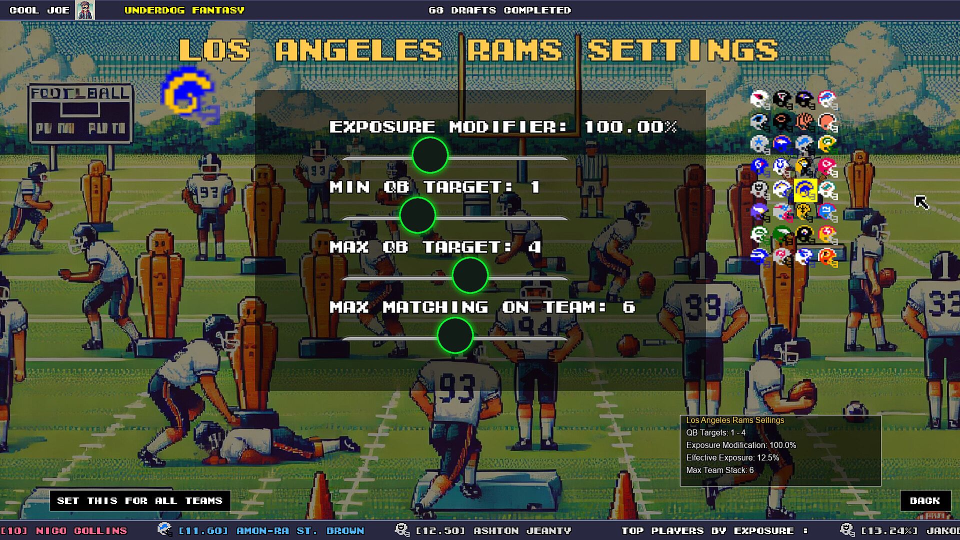 Important: This program is designed to work with 18-pick Underdog Fantasy Best Ball Drafts OR 20-pick DraftKings Best Ball Drafts. We now additionally support the Drafters site. No other format is currently supported.