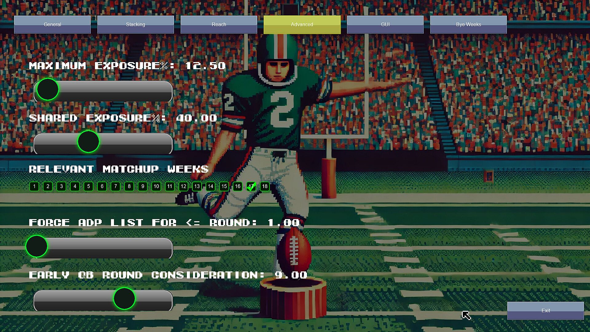 Every aspect of Huddle Genius is customizable – from player roles (e.g., rushing QB or pass-catching RB) to tier creation and stack targeting logic. The Preferences interface provides a graphical tool to configure your ideal draft behavior.
