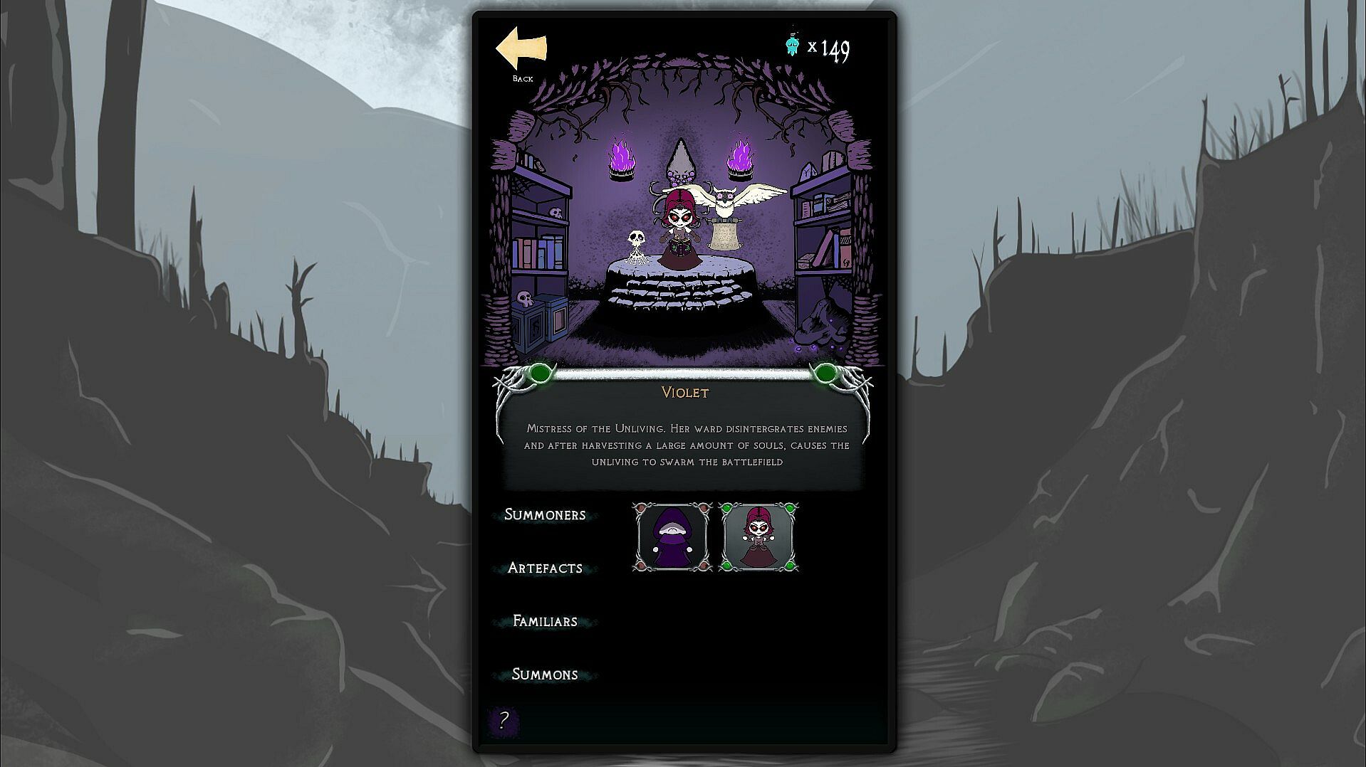 Customize your load out of Artefacts, Familars and Friends! Within your Sanctum, fine-tune your menagerie of eldritch horrors and undead monstrosities, and claw your way to victory over the Chromacrusade!