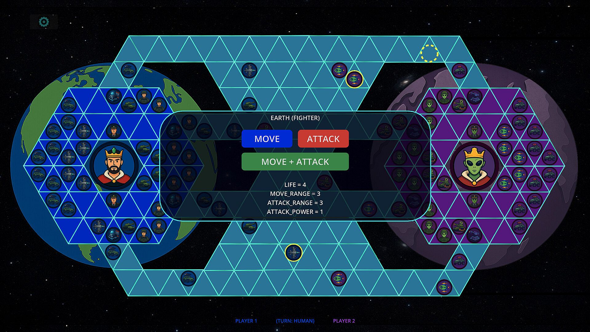 The game combines classic board-game style strategy with modern sci-fi warfare elements. Every move matters. Every unit counts.