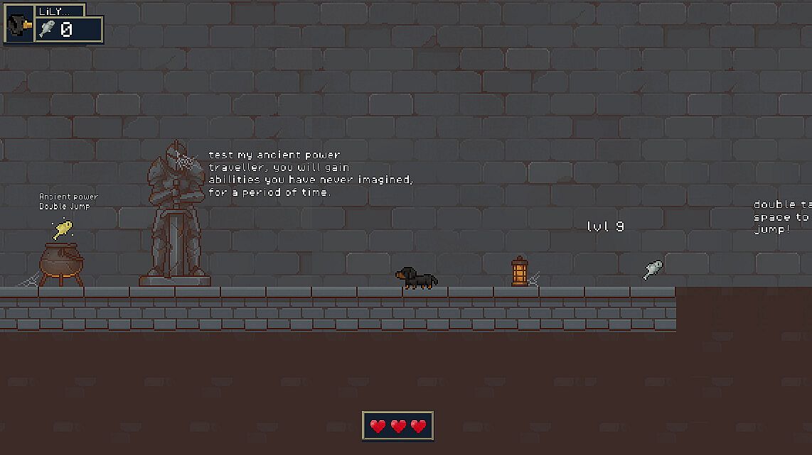 Hungry Lily & the Fallen Knight is a 2D pixel art platformer with a twist — you play as Lily, a scrappy little sausage dog tossed into a strange new world.