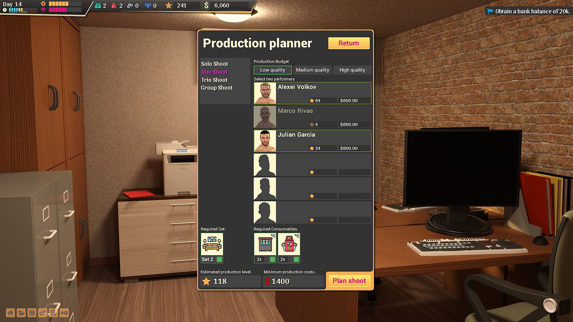 As you navigate the vibrant yet gritty streets of Riveroaks, you’ll forge connections, make tough choices, and carve out your own path. Will you rise to the challenge of running your father’s newly-founded gay-focused studio, or will you find your own calling amidst the chaos of an industry driven by desire and power? Along the way, you’ll meet a diverse cast of characters, each with their own aspirations, secrets, and unique roles in your journey.