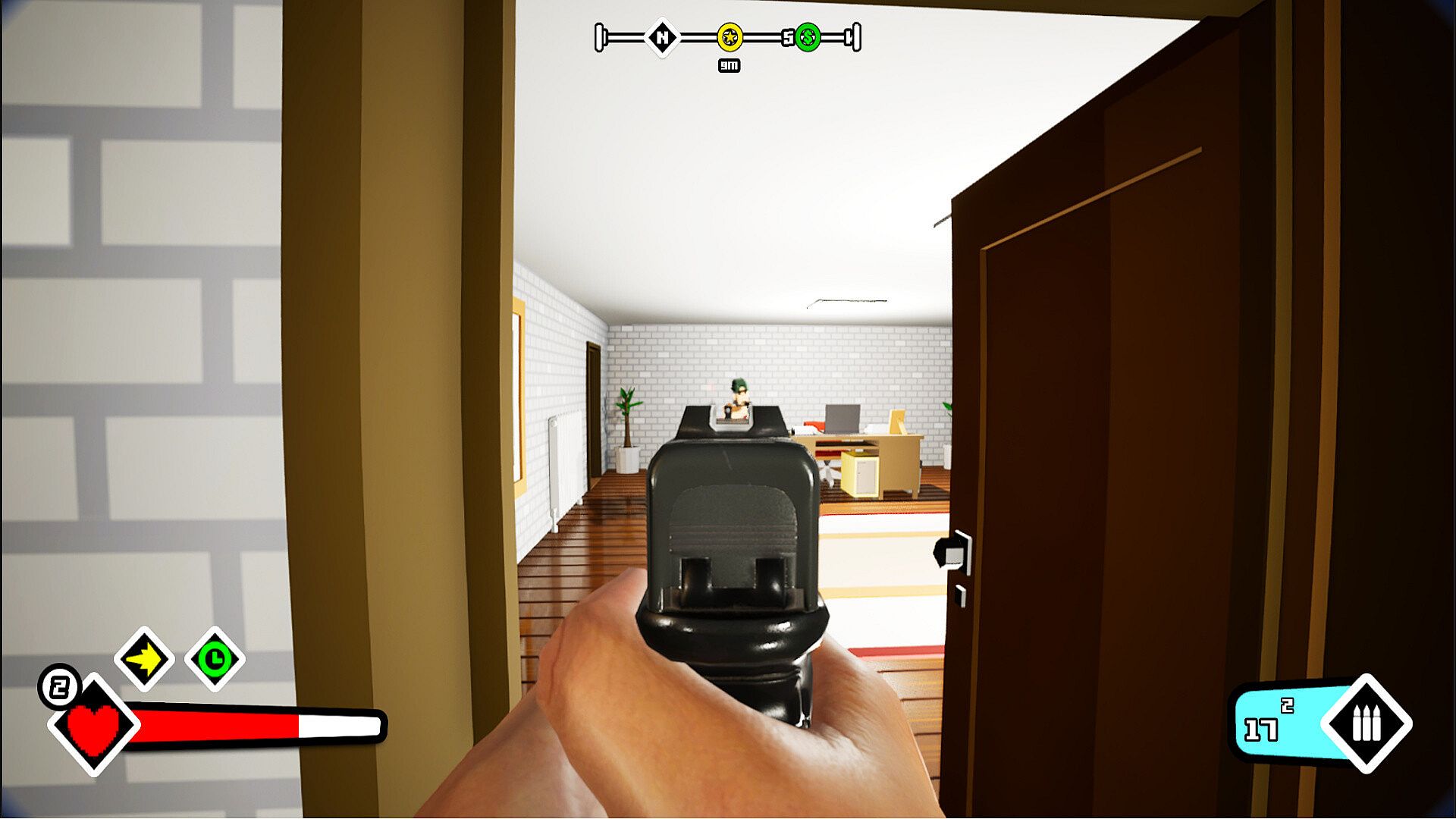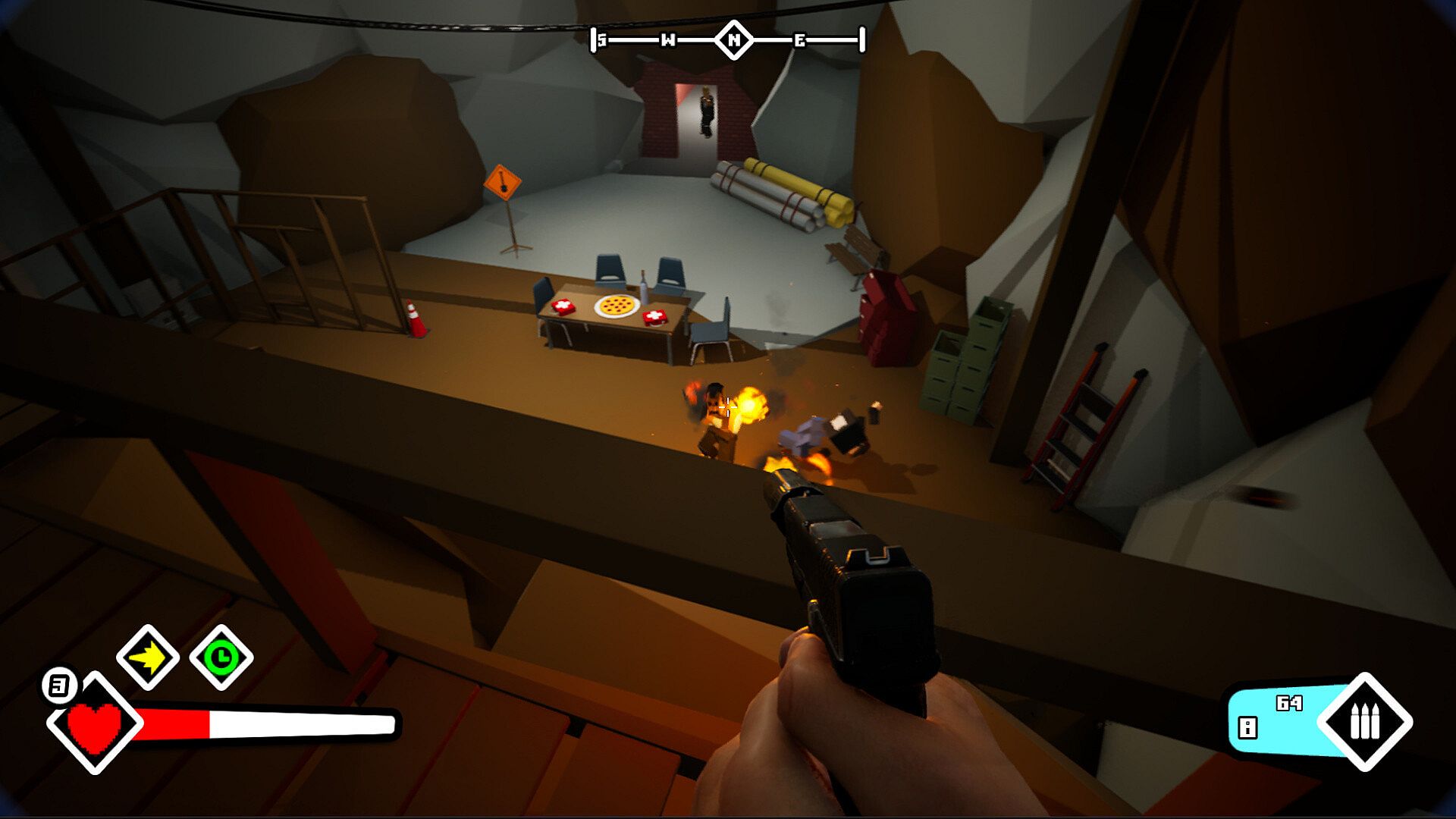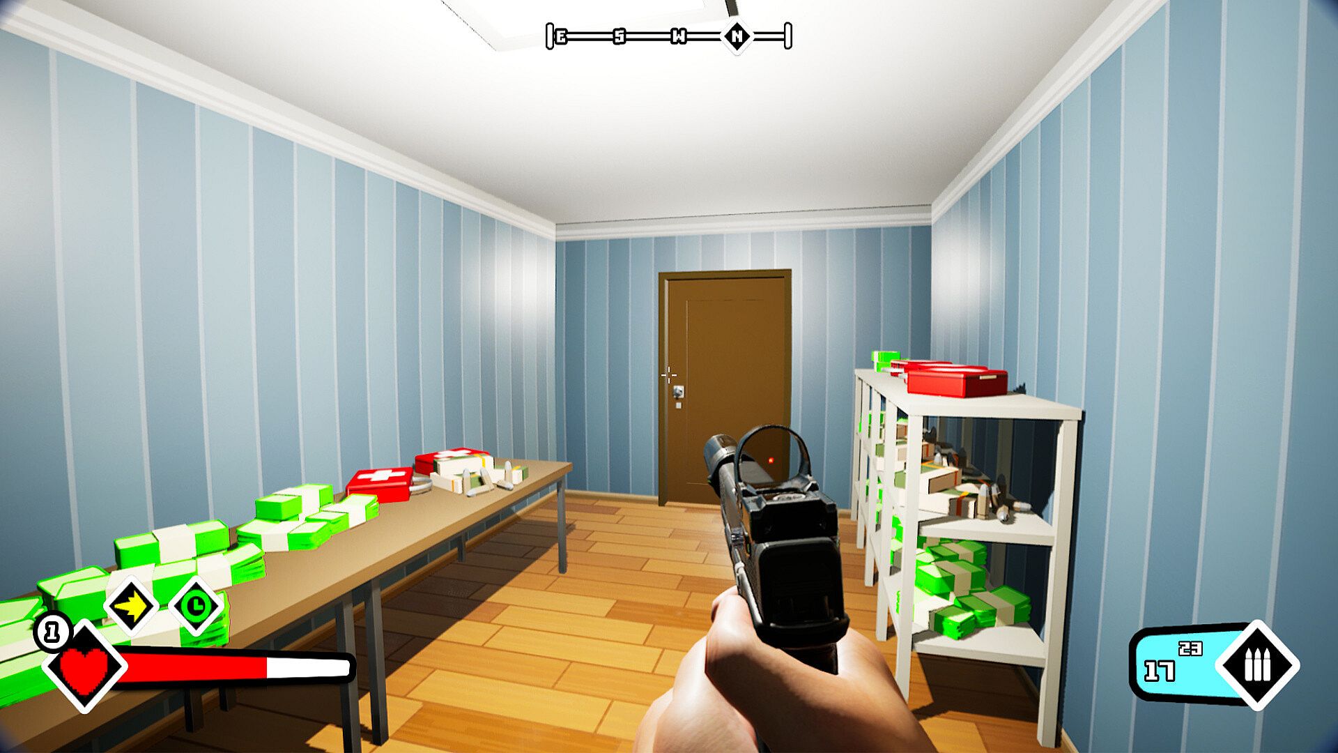 Hunkfrat delivers a dynamic, high-reaction combat experience. Use your weapons to take down enemies. Every encounter and distance progression rewards you with money, which you can spend back at your home using the supplier to purchase new weapons, supplies and upgrades.