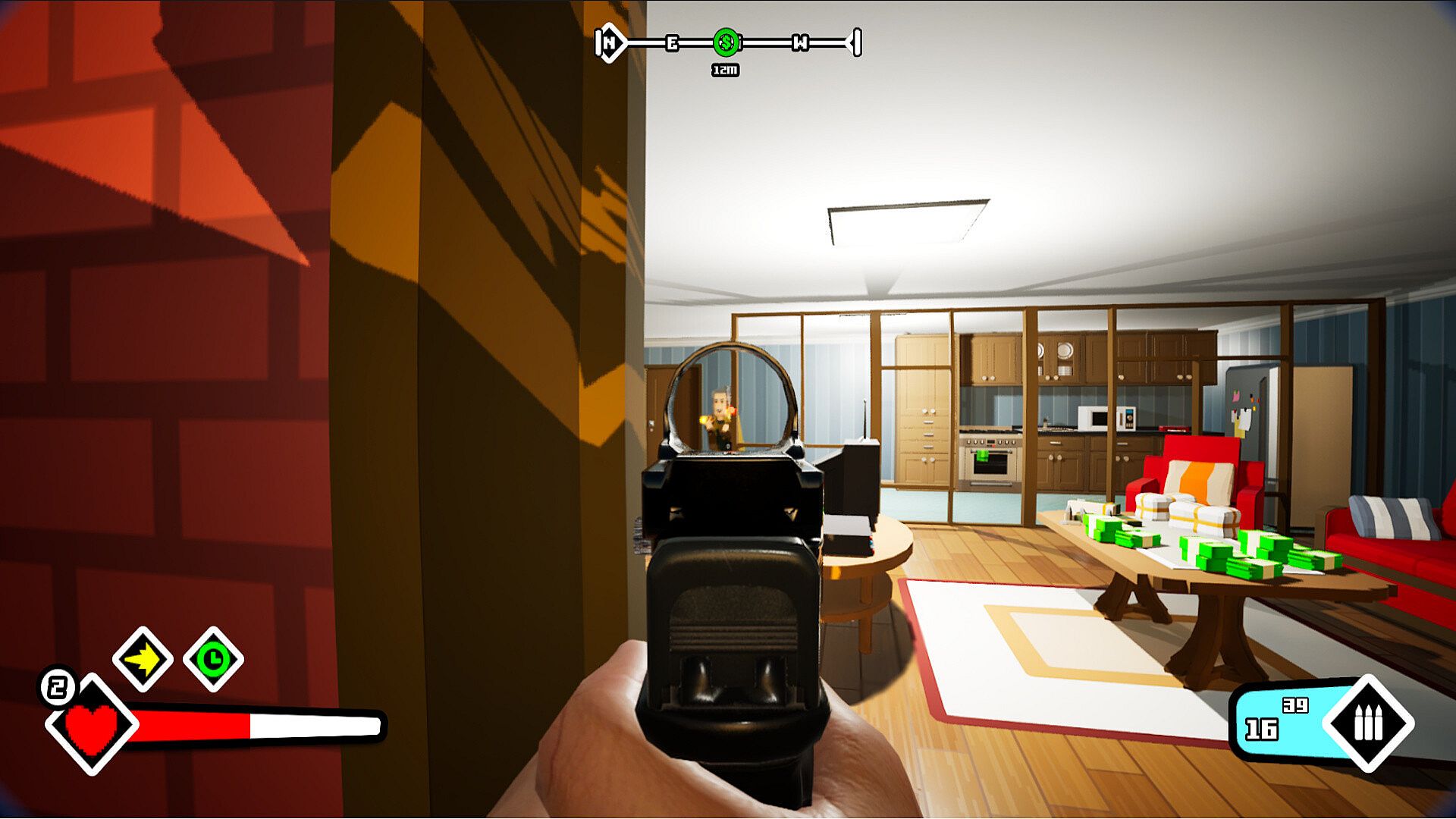 Fight Wimp Gang members across a variety of locations throughout the stages to get back your drinks. Each death is not the end, but a new start. You will be rewarded with money as the distance you travelled. You can then return home to gear up with new weapons and upgrades. Every run gives you more money, allowing you to get stronger as you progress.